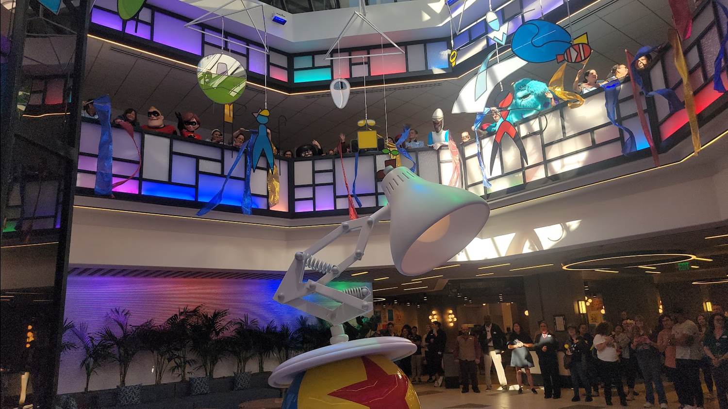 Inside the lobby, guests will find more of their favorite characters, including an impressive Luxo Jr. statue. Guests will also see Edna Mode and a playful couch perhaps inspired by Heimlich.