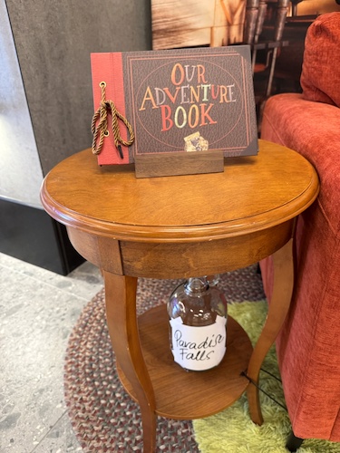 - While the seats are perfect for guests to sit in, the area is also decorated with a number of specific props referencing the film, including the “My Adventure Book" photo album, and a Paradise Falls savings jar.