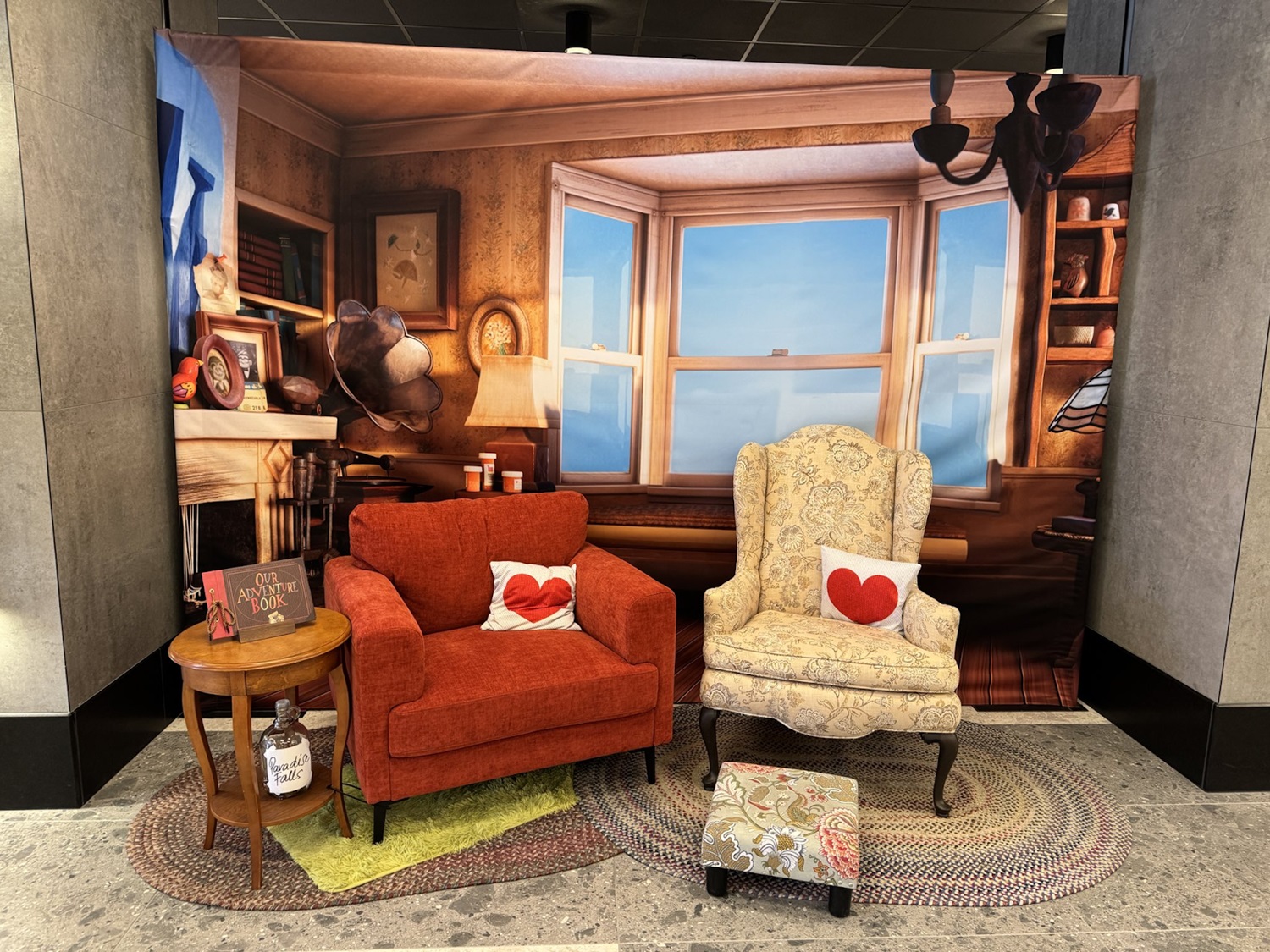 - While the seats are perfect for guests to sit in, the area is also decorated with a number of specific props referencing the film, including the “My Adventure Book" photo album, and a Paradise Falls savings jar.