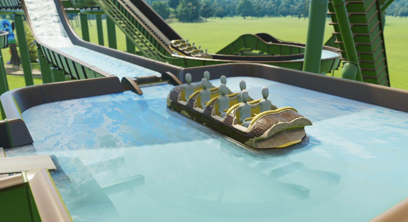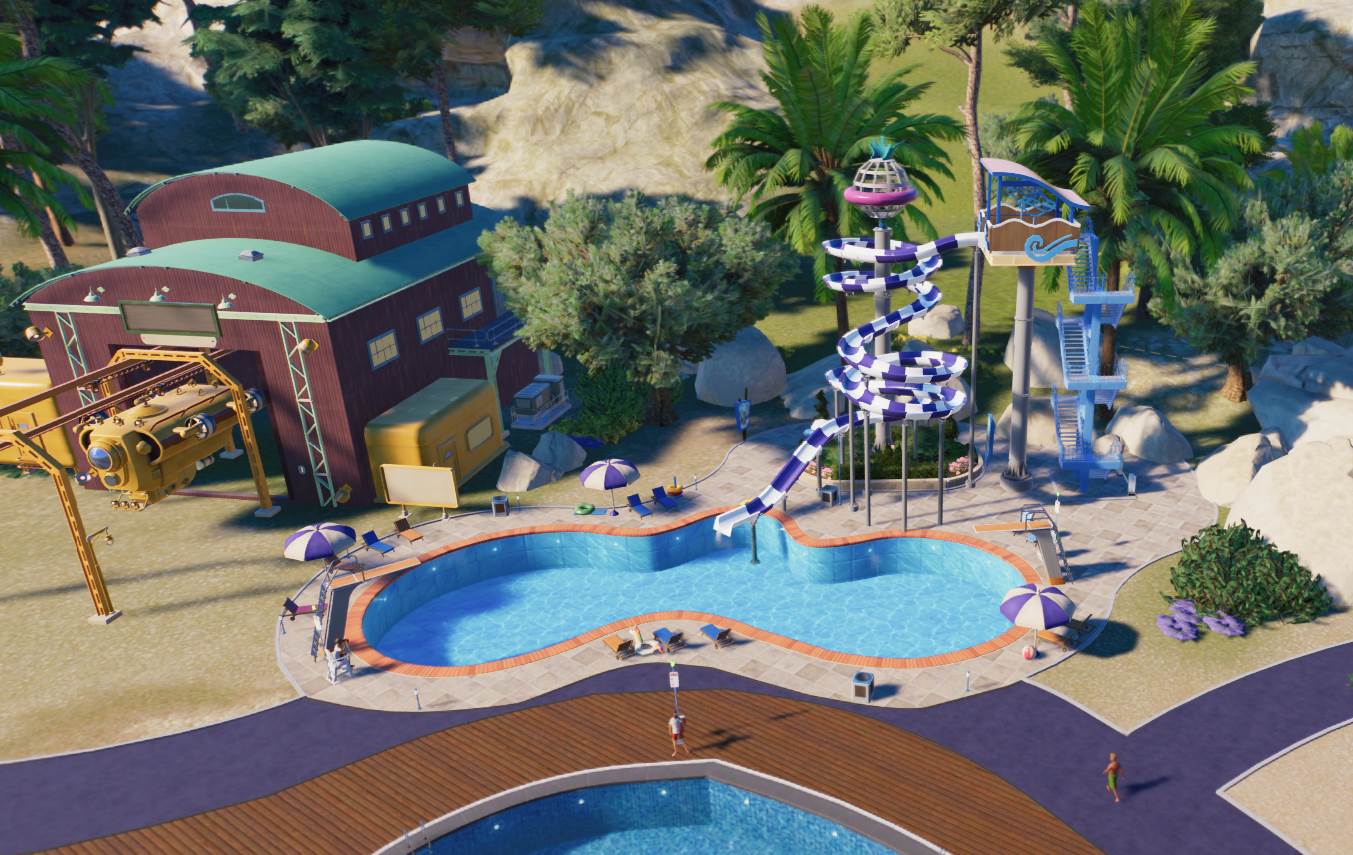 The new flume building system works similarly to the coaster editor, allowing players to click and drag slide pieces to shape their creations. I had a lot of fun getting to explore this new side of the game, even if I think the water slide designs are a little clunky compared to their stellar coaster designs. However, this is the first time a theme park simulation game has included water parks since RollerCoaster Tycoon 3, and this game exponentially improved upon the 2004 game’s water park content.