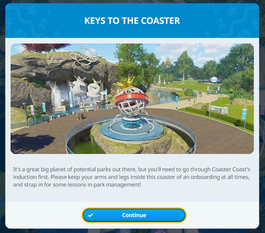 Jumping into the first scenario, Keys to the Coaster, players are reunited with Eugene Newton and Oswald B Thompson as you begin your journey creating successful theme parks all around the world. With voice acting and visual prompts, navigating back into your coaster building prowess is a breeze.