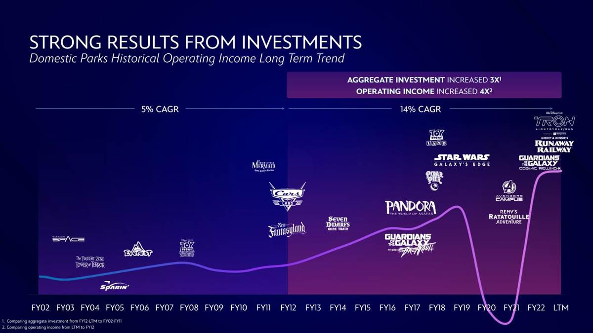 - An interesting graphic shows attraction investments at the Walt Disney World Resort over the last 15 years or so, and the effect the investment had on the operating income.