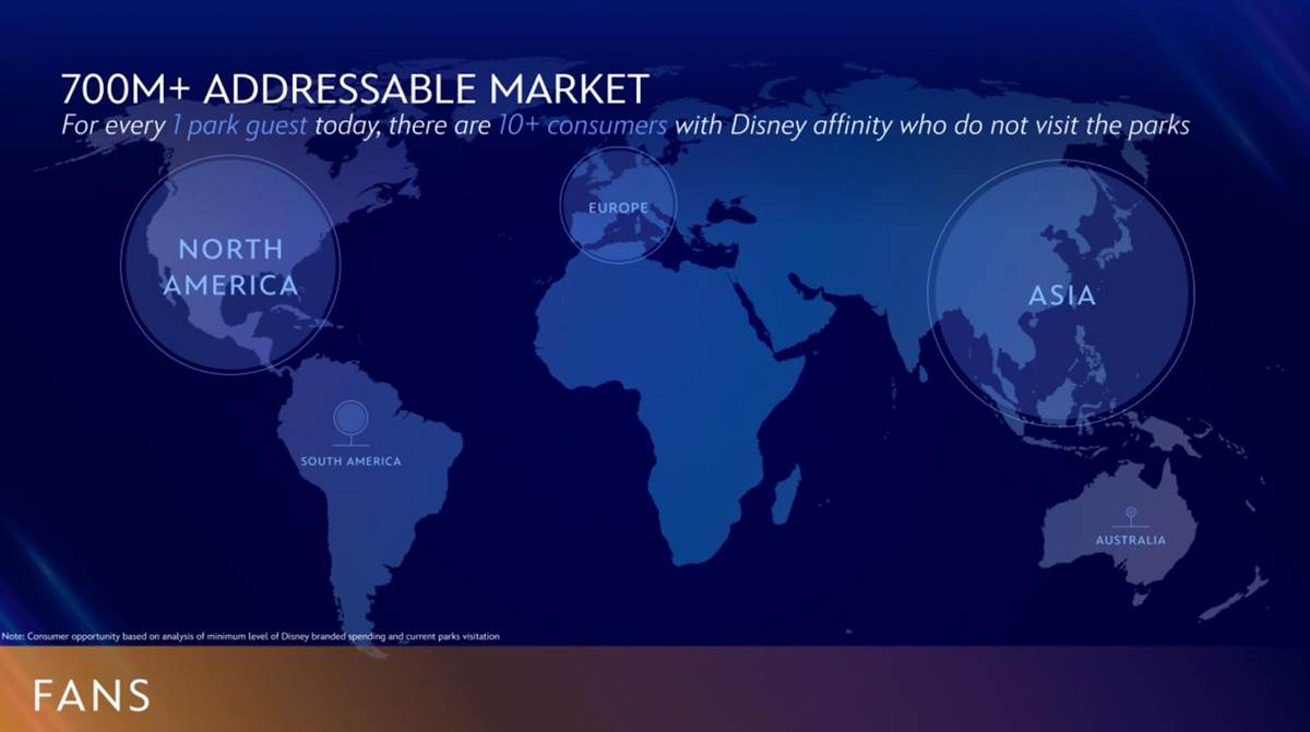 - Also interesting is that Disney’s research suggests that, for every 1 park guest today, there are 10 people with an affinity for Disney overall but who don’t visit the theme parks.