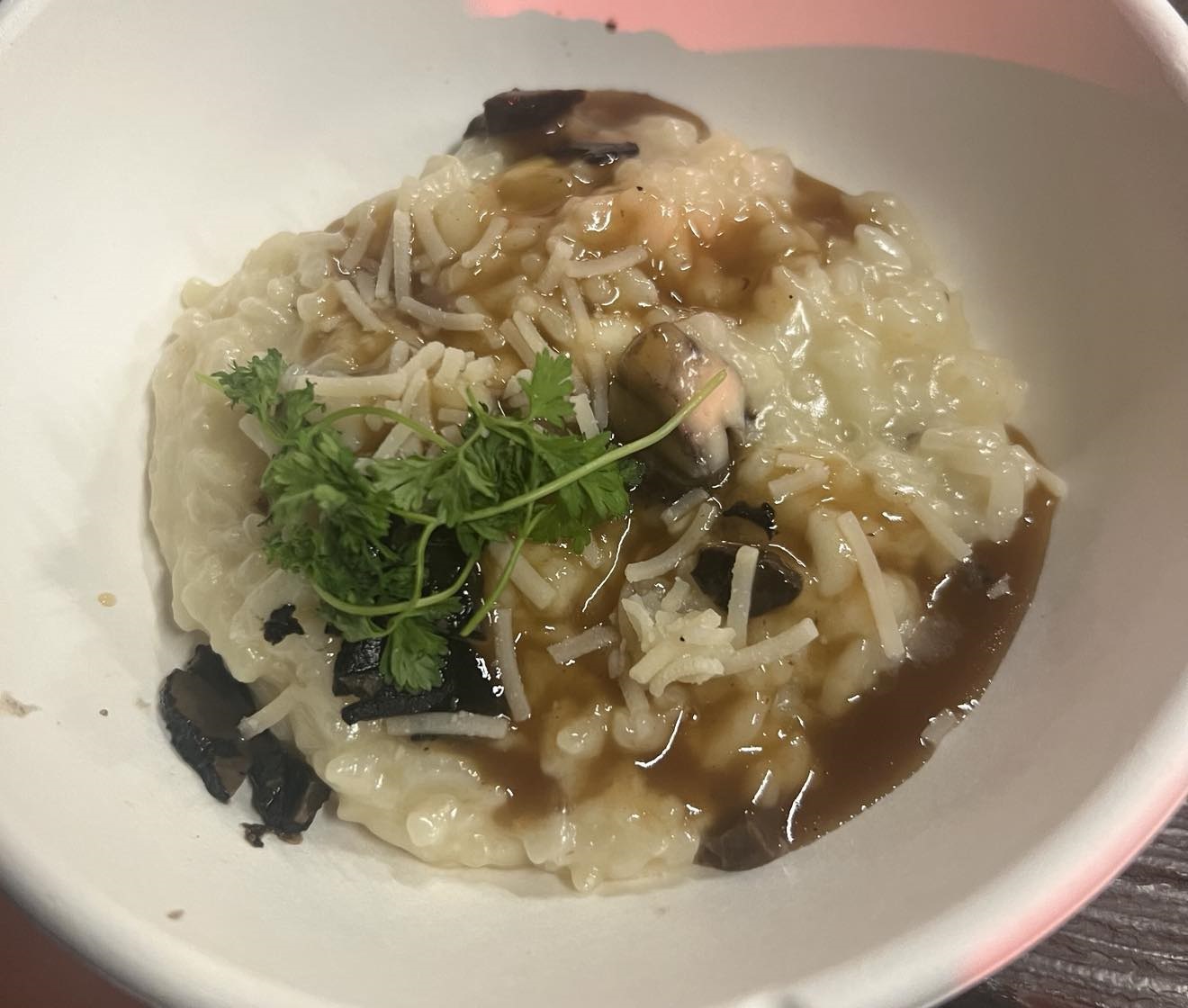 - Wild Mushroom Risotto with aged parmesan, truffle shavings, and zinfandel reduction (Found in Canada)