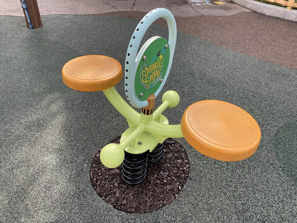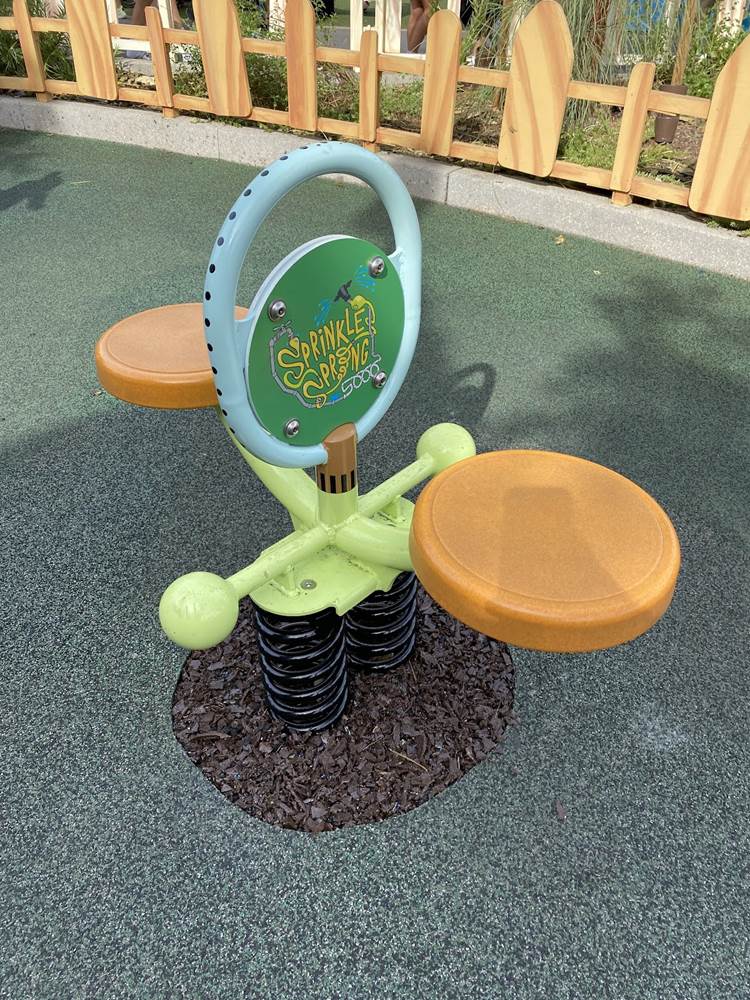 - The new playground-style equipment is themed to The Sprinkle Spring 5000, which is more like a spring-loaded see-saw, themed to oversize lawn sprinklers in Goofy’s yard, and debuted with the newly reimagined Mickey’s Toontown in March of this year.