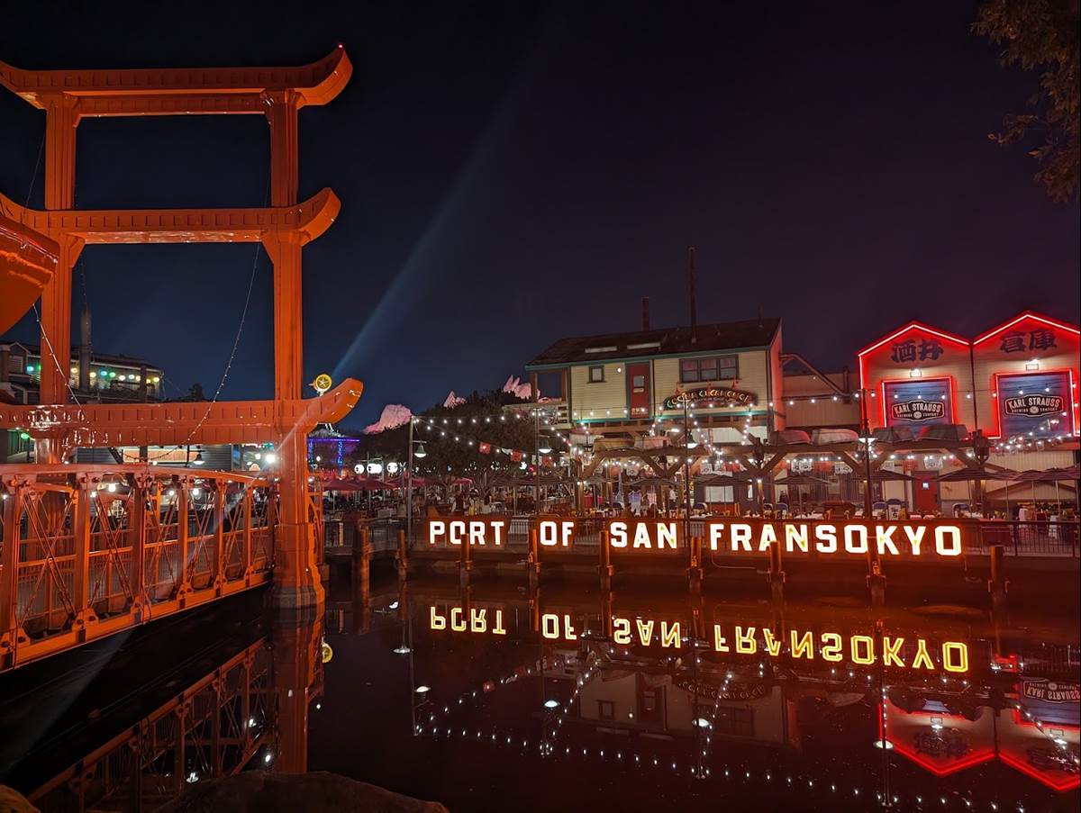 Hinted at since the original concept artwork, the new signage shines bright over the waters of the port. The gorgeous new arches over the bridge have become a fun new addition to the overall Disney California Adventure skyline.