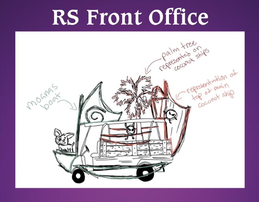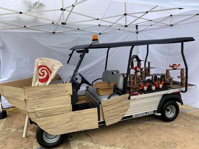 The first golf cart I saw was inspired by Moana, featuring hand-painted kakamora on board, with the golf cart in the process of being transformed into Moana’s boat. Parade watchers will hear “How Far I’ll Go" as the cart passes by.