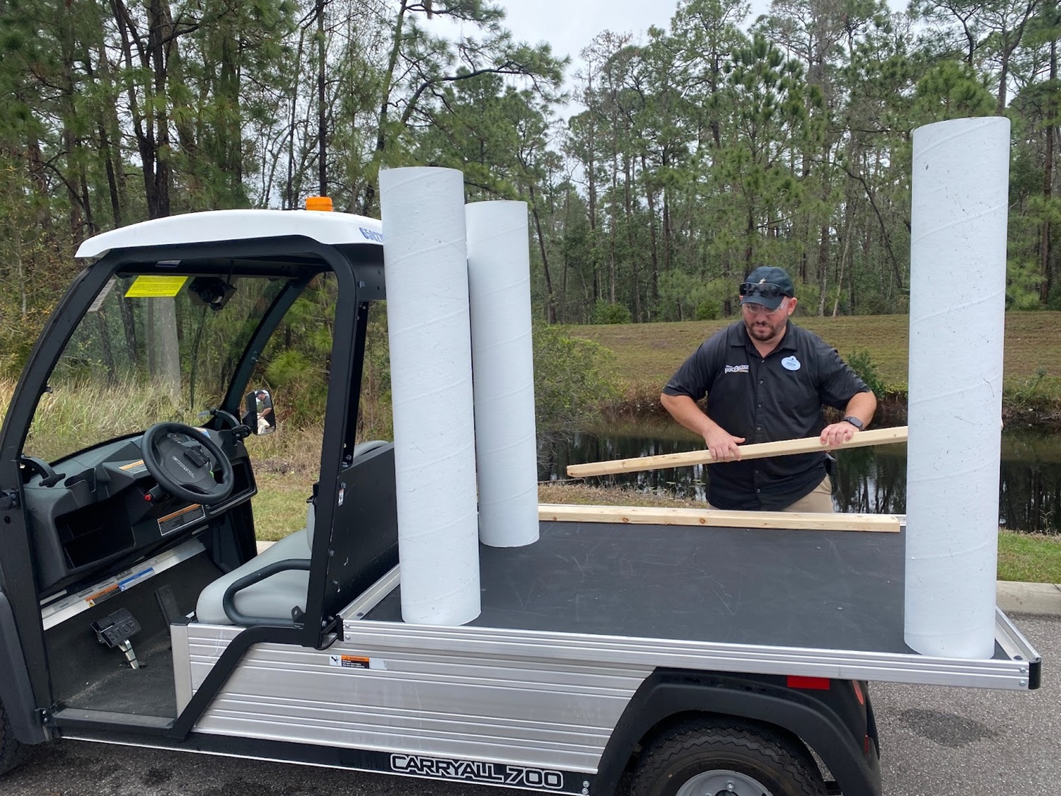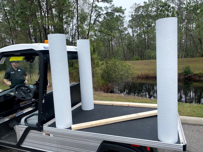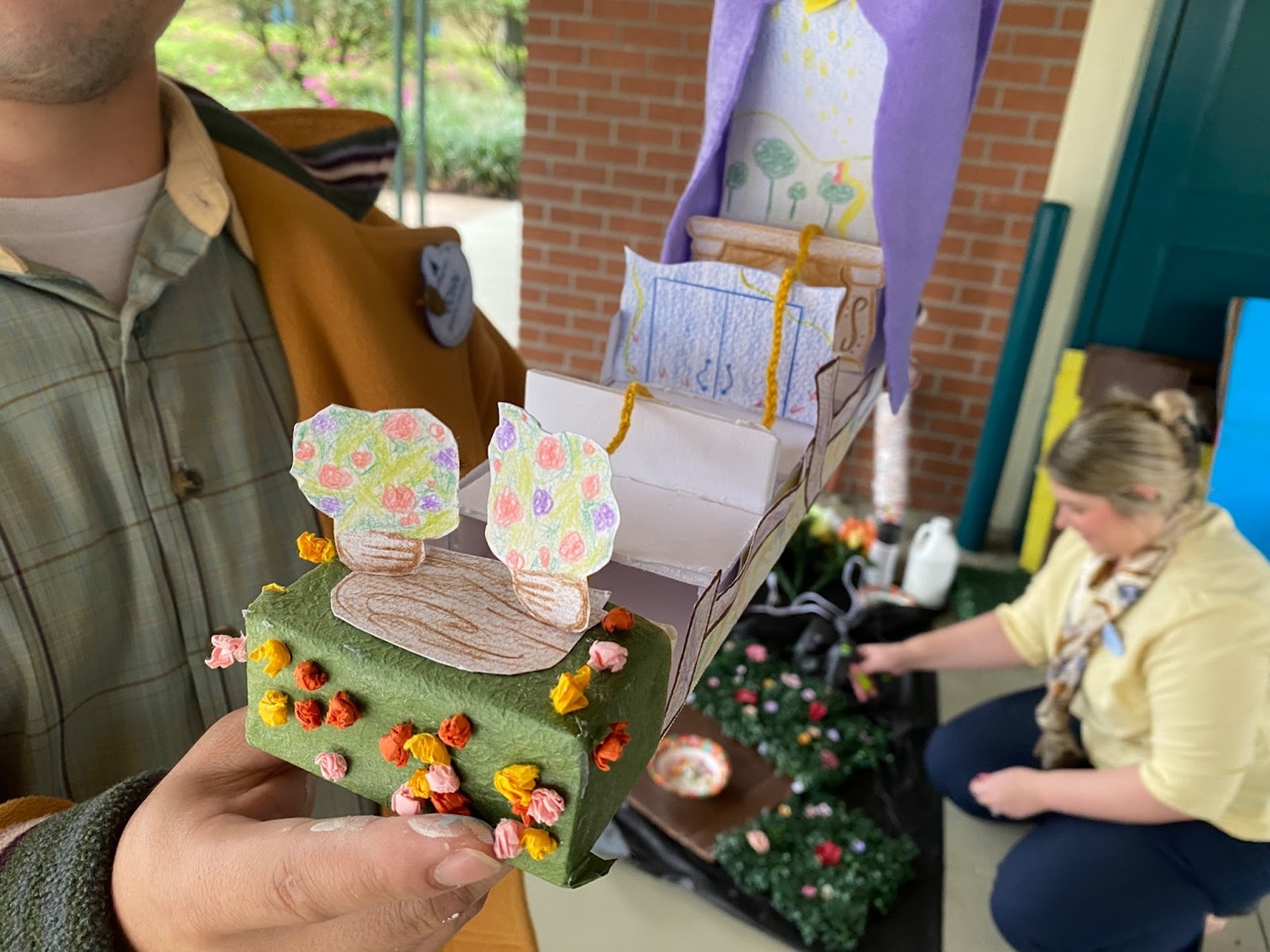 Next up, we saw a golf cart in a lower stage of development, but I was still able to pick up that it would be themed around Hercules – thanks to the columns being placed on the back of the golf cart. In fact, much of this friendly competition between various teams at Port Orleans makes use of recycled materials. For example, the paints used are all from previous projects around Walt Disney World.