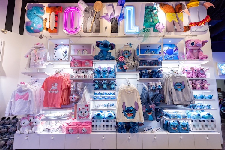 - Guests will find plenty of character merchandise and apparel, featuring characters such as Winnie the Pooh and friends, Marie from The Aristocats, Stitch, and more.