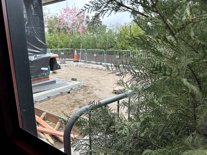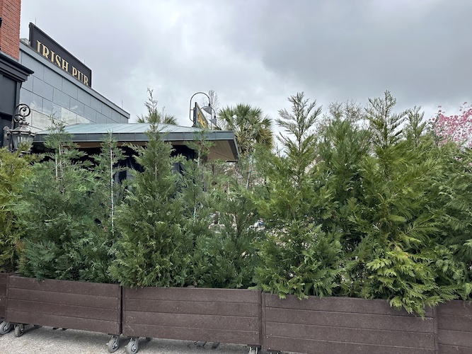 A series of temporary planters blocks the area while the work is being done, so guests who are used to walking through this area will now have to head towards The Boathouse and head through the main thoroughfare of The Landing to get through this portion of Disney Springs.