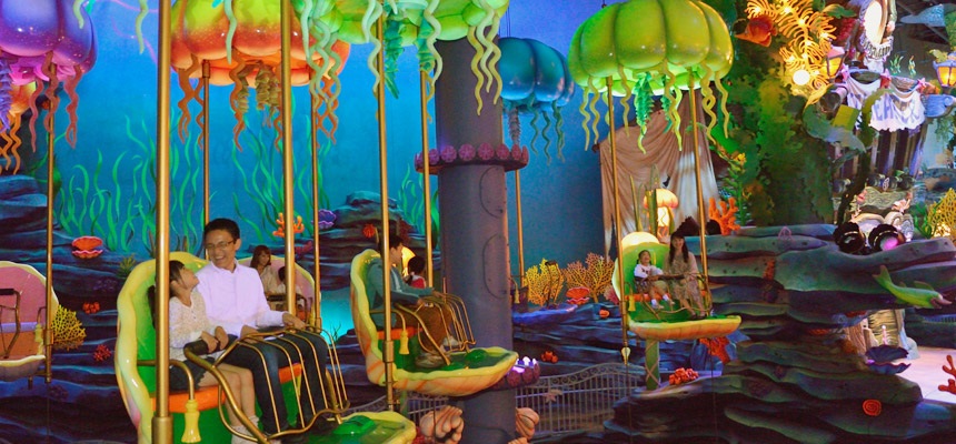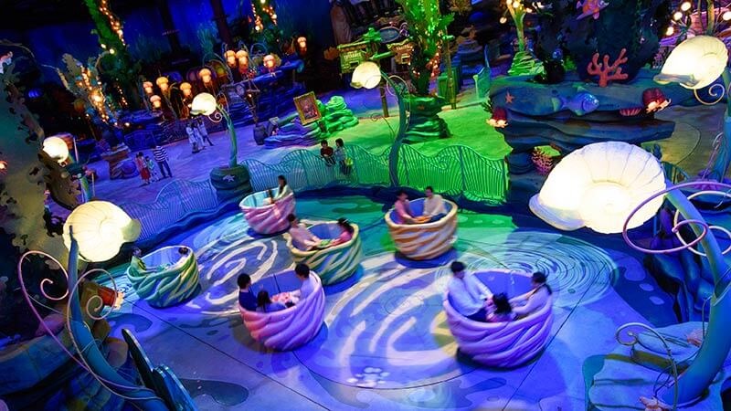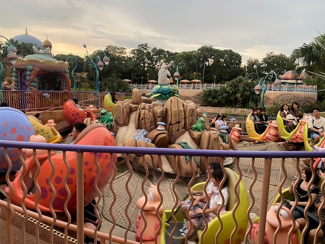 We start at the bottom with what I guess it’s technically “the worst attraction" in the park, and that’s Jumpin’ Jellyfish. Similar to the attraction with the same name at Disney California Adventure, this ride is actually a lot less exciting. The vehicles are more enclosed, and the motions are significantly slower, offering almost no thrill to the experience. And while the indoor Mermaid Lagoon is beautiful, there’s little in the way to look at from the dark corner this ride is placed in.