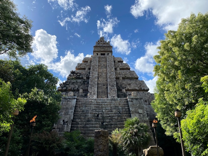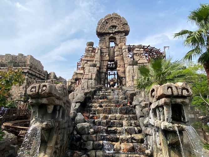 Raging Spirits, layout-wise at least, is an exact clone of Indiana Jones et le Temple du Péril at Disneyland Paris, but in true Tokyo DisneySea fashion, this version is highly plussed. For starters, the impressive facade beckons guests towards the attraction, with flames creating a fun visual and interesting smell. Even without the Indiana Jones IP, this somehow becomes a more interesting attraction, with impressive theming for this type of coaster. More importantly, this version is far less rough than its Parisian counterpart, making for a much more enjoyable experience.