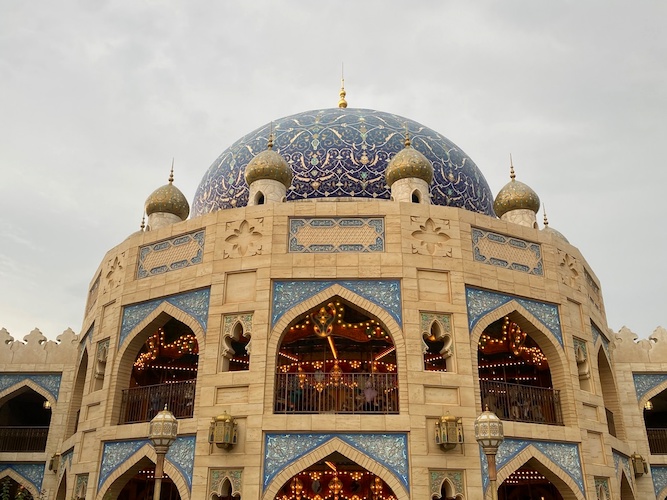 Carousels are a staple of Disney Parks the world-over, and yet the Caravan Carousel in the beautiful Aladdin-inspired Arabian Coast is the only double decker one. Set inside this gorgeous structure, the carousel features your typical animals alongside multiple, different colored Genies. As organ-styled music from Aladdin plays, you experience some beautiful views of the wide-open courtyard below.