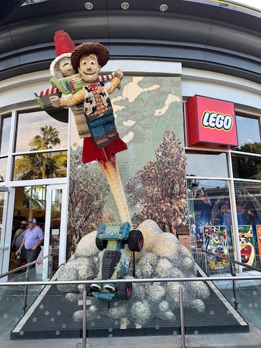 Iconic elements of The LEGO Store exterior remain, including LEGO versions of Belle and the Beast, Woody and Buzz and Prince Phillip and Maleficent. Sadly, they all seem pretty sunbleached and in need of a refresh.
