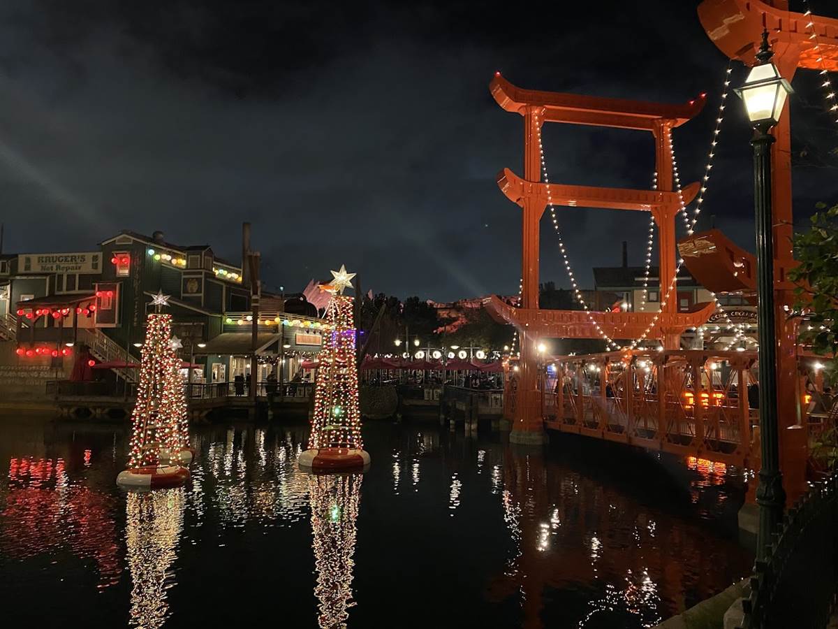 San Fransokyo Square at Disney California Adventure has been decorated for its first holiday season.