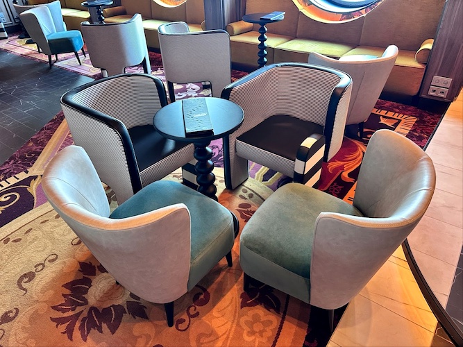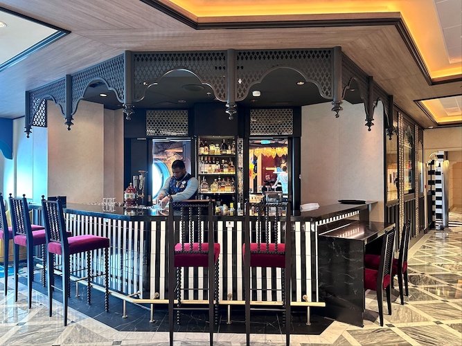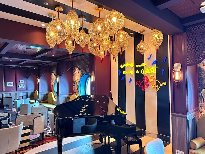 This hyper stylish piano bar, located on Deck 3 Mid, features a stylish ode to the Aristocats and jazz clubs of yore.