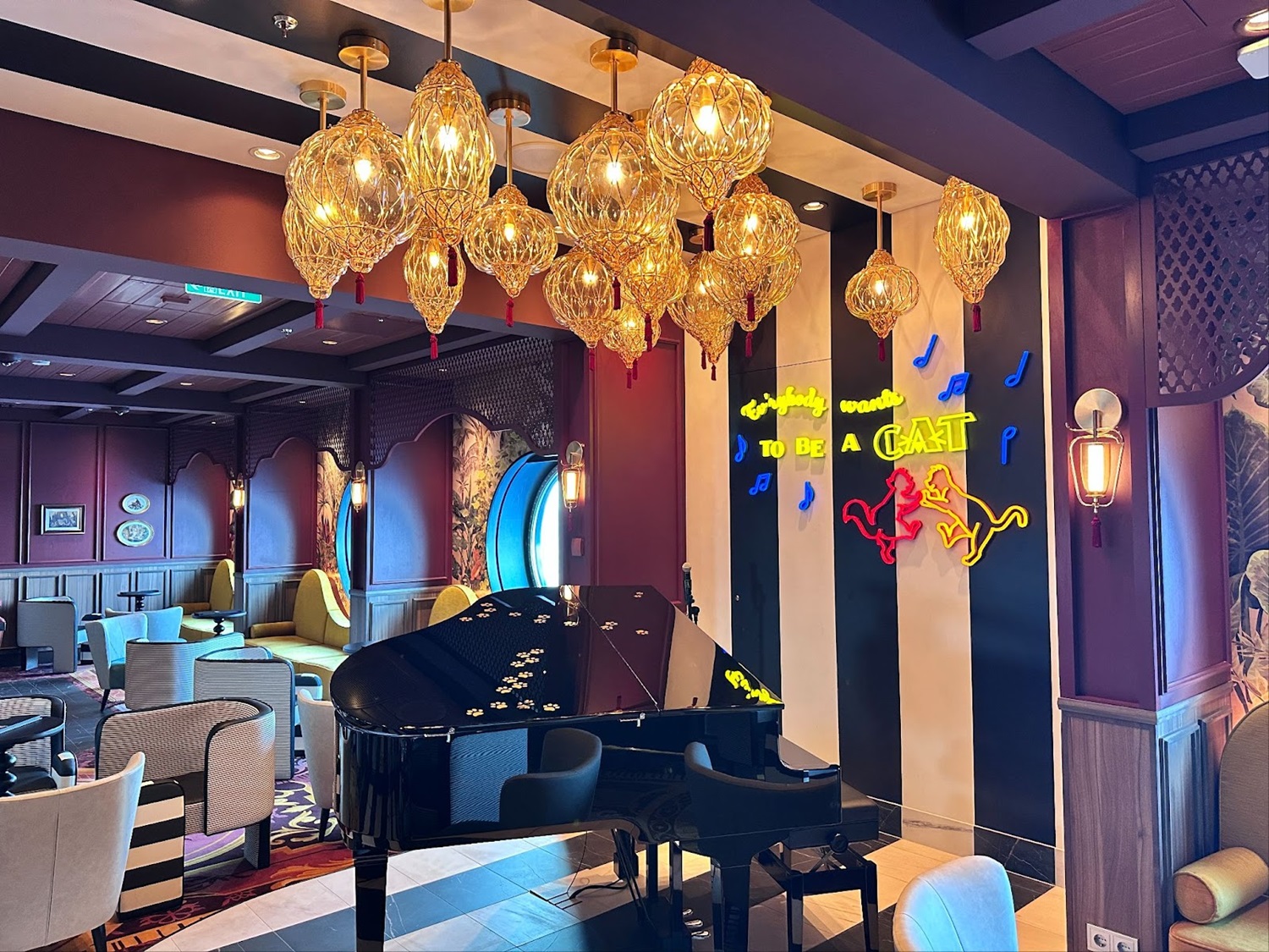 The piano bar replaces Nightingale's, the Cinderella-themed location on the Disney Wish.
