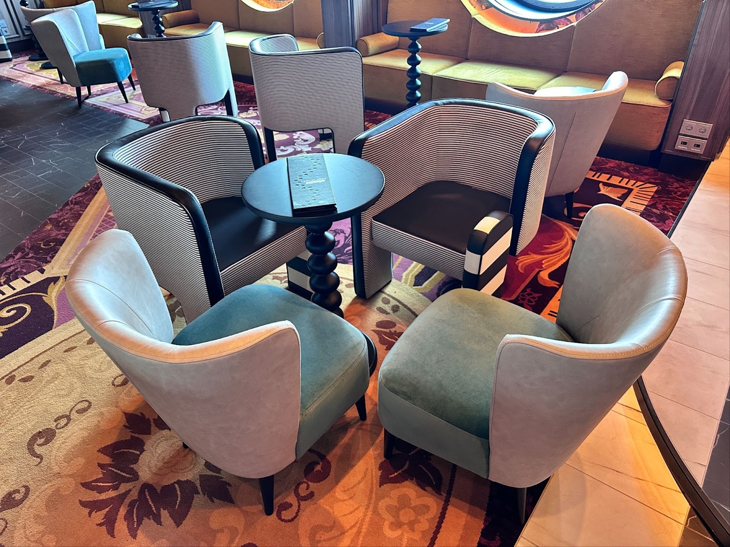 This hyper stylish piano bar, located on Deck 3 Mid, features a stylish ode to the Aristocats and jazz clubs of yore.