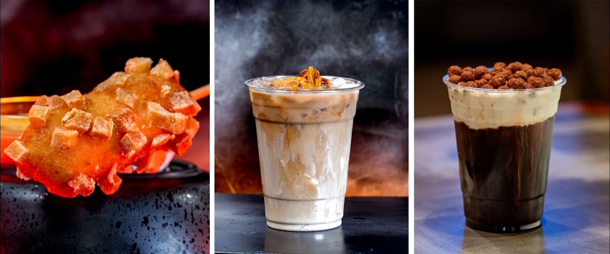 - Oga’s Obsession: Minute Maid Lemonade, wild strawberry flavor, yogurt-filled popping spheres, and strawberry and grape candy pebbles with a bursting dried fruit mixture (Available Mar. 28 through May 11)