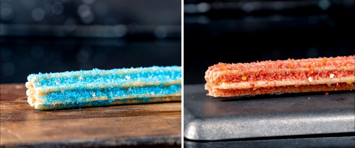 - Spiced Red Cinnamon Churro: Classic churro rolled in red hot cinnamon and gold edible glitter sugar