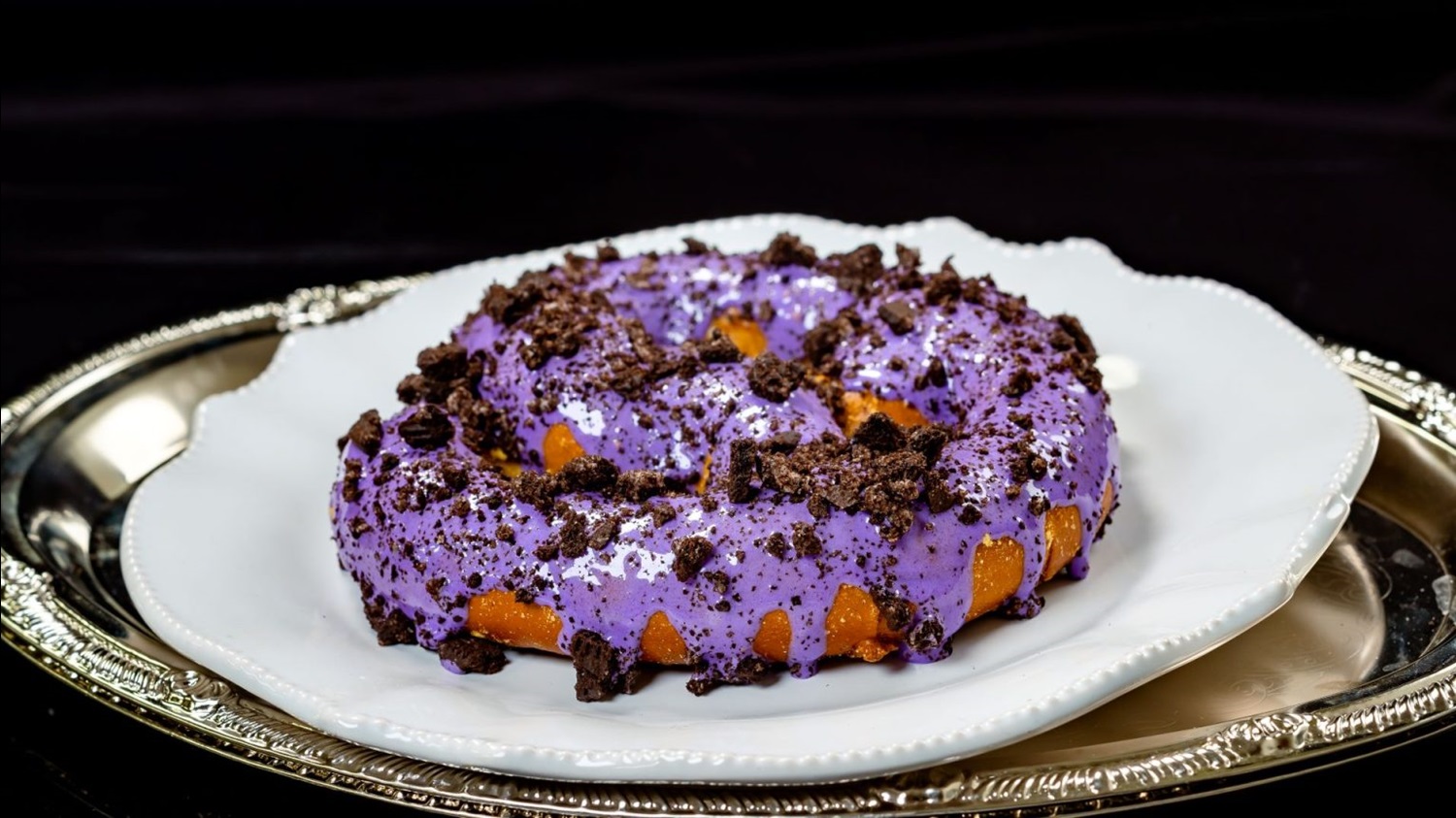 - Peka Pretzel: Cream cheese-filled pretzel and taro sweetened condensed milk topped with chocolate crème cookie crumbles