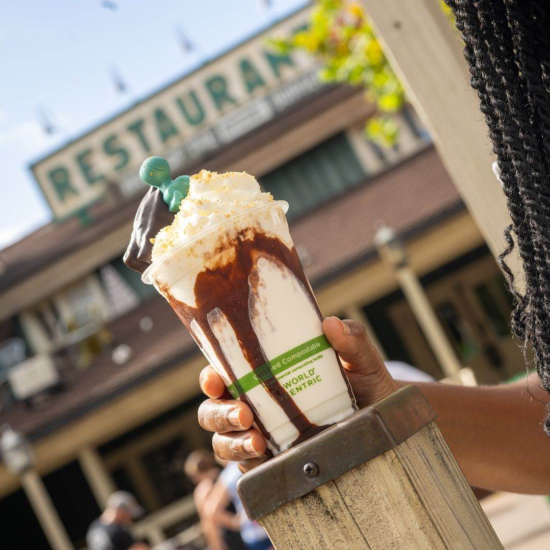 - S’moresosaurus Shake: Vanilla shake with chocolate and caramel drizzle topped with a chocolate-dipped s’more with a chocolate fudge sauce and graham cracker crumb rim – available at Restaurantosaurus