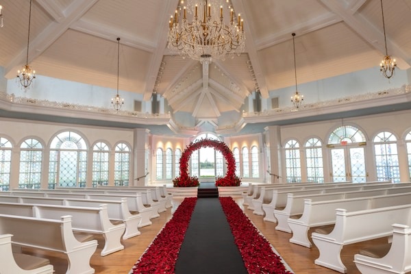 - If embracing the Evil Queen’s dramatic aesthetic is more your style, Disney’s Wedding Pavilion at the Grand Floridian offers dark and bold color palette options to create an unforgettable ceremony.