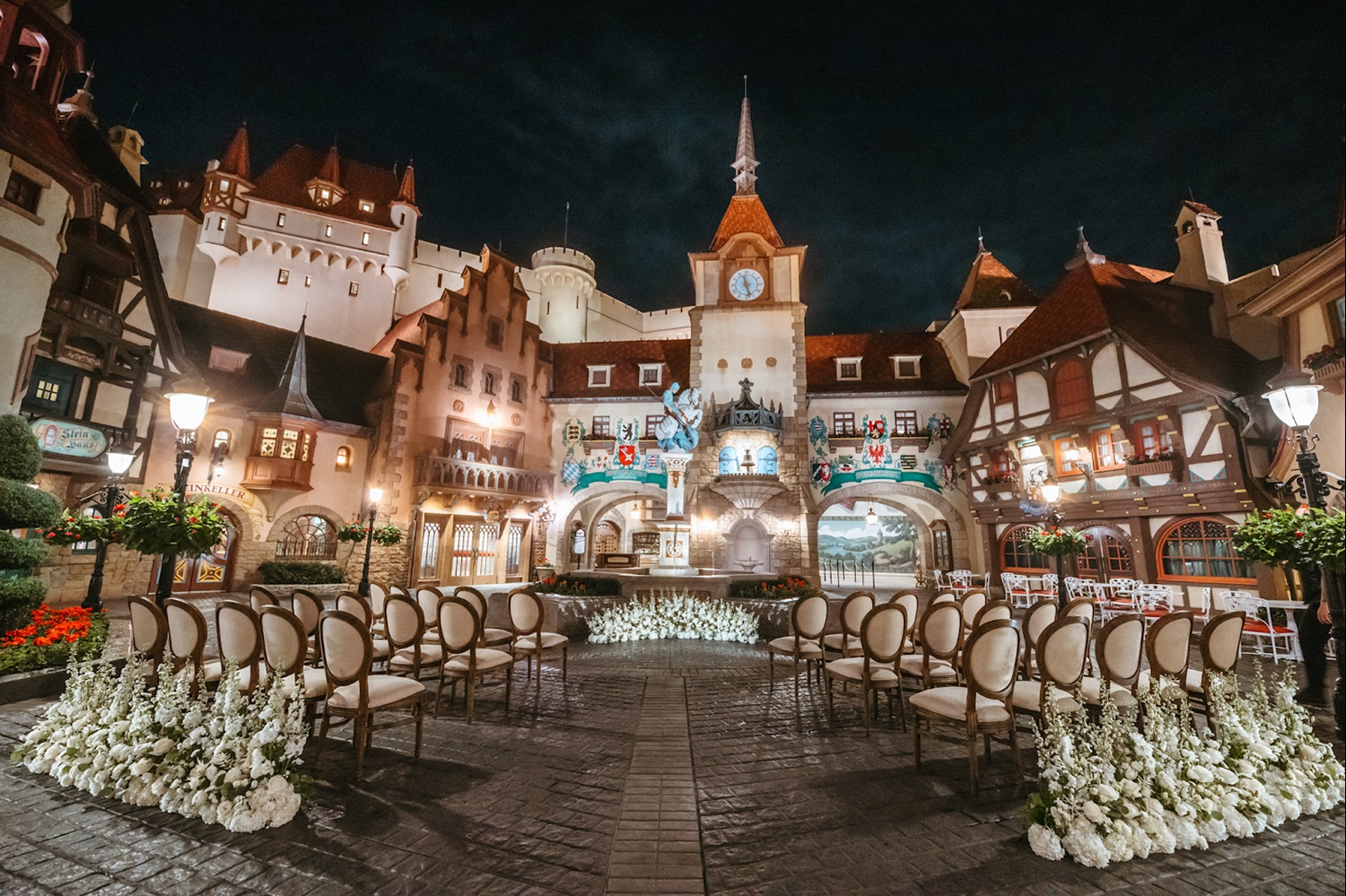 - For those looking for a bold backdrop for their nuptials, EPCOT’s Germany Courtyard is a great way to embrace the origins of the classic Snow White fairytale.