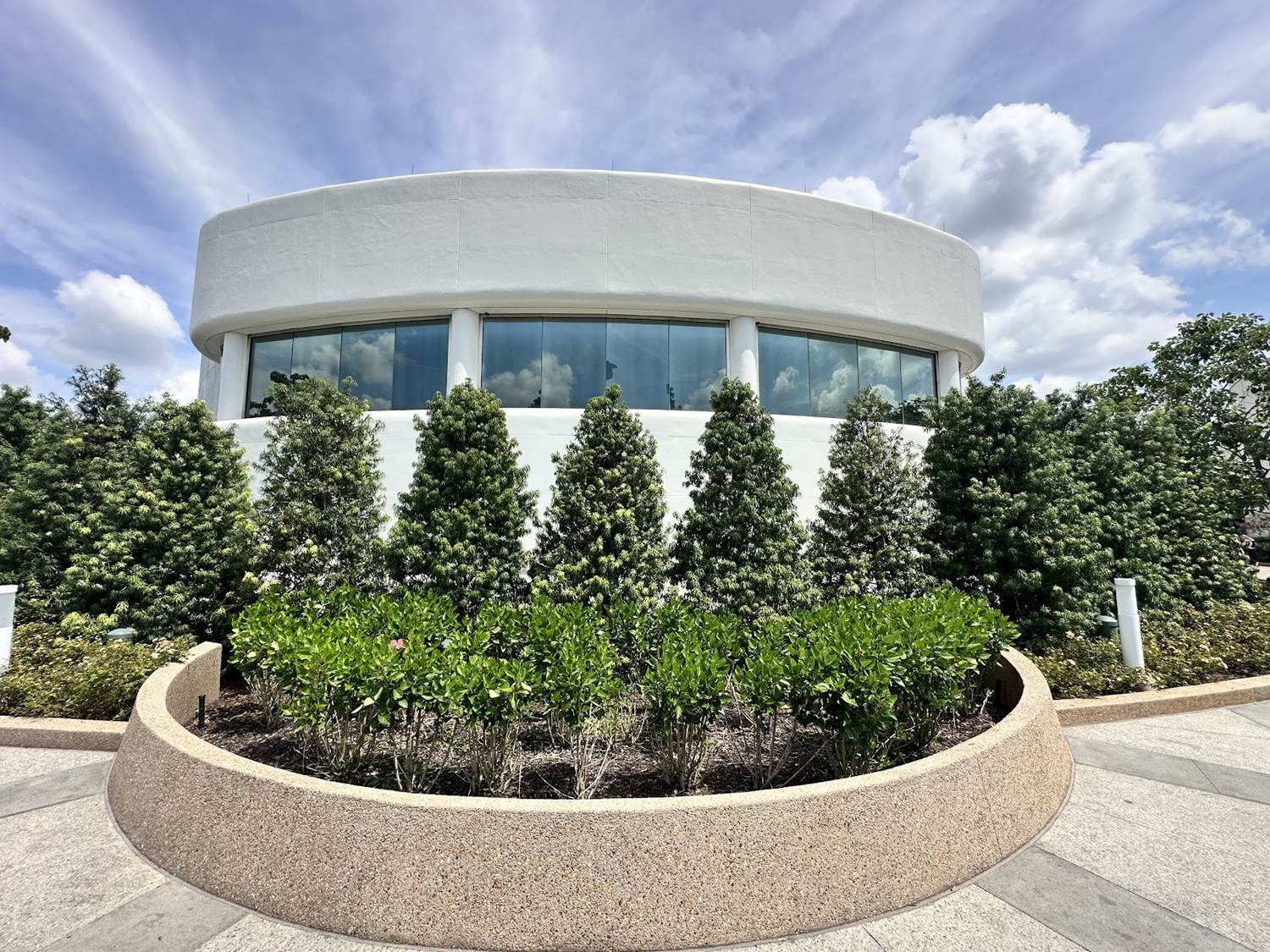 Spaceship Earth, which was sponsored until 2017 by Siemens (and AT&T and Bell Systems prior to this), now has become like so many EPCOT pavilions before it and is currently without corporate sponsorship. The lounge space at this pavilion, notably, is in prominent guest view. And, from the other side of the glass, it provides prominent park views. Especially of the new World Celebration Gardens right outside the window, making the indoor lounge space ideal real estate.