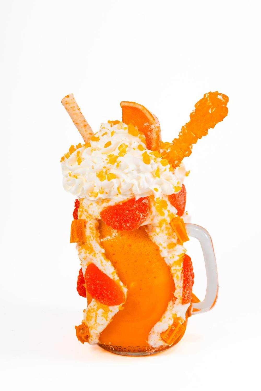 - Creamsicle ice cream is topped with homemade whipped cream, sprinkled with orange rock candies, an orange-flavored wafer, and creamsicle-flavored licorice bites and orange slice candies.