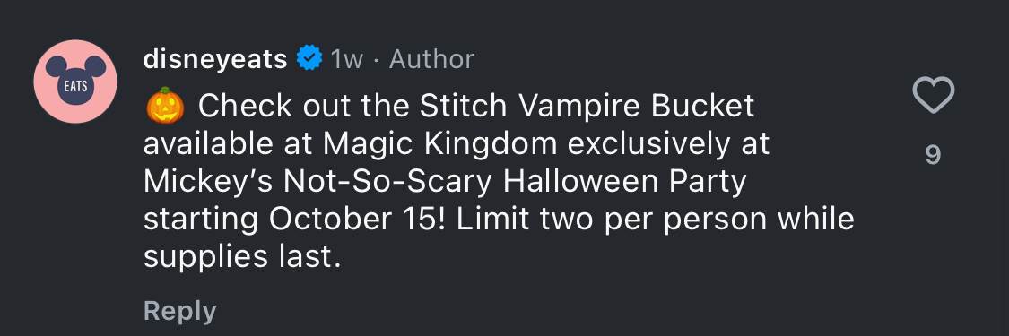 - The Stitch Vampire Popcorn Bucket is available exclusively during Mickey’s Not-So-Scary Halloween Party at the Magic Kingdom, with a limit of two per person while supplies last.
