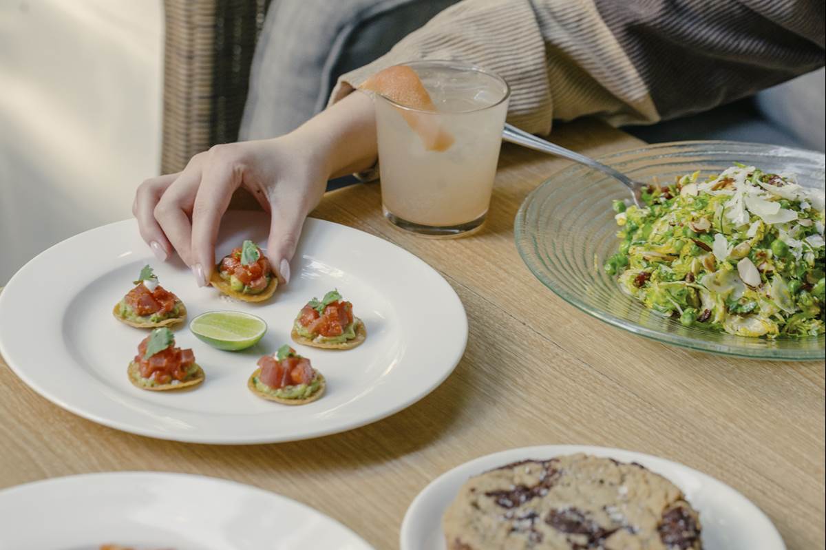 - Highlights include starters like Caramelized Brussels Sprouts with balsamic and Parmigiano Reggiano and Ahi Tuna Tostadas with Hass avocado, Thai chili and crisp corn tortilla.