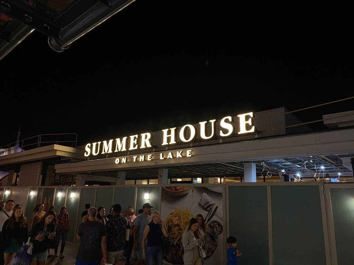 - When walking through Disney Springs this weekend, we noticed the recently installed signage for Summer House on the Lake lit up at night.