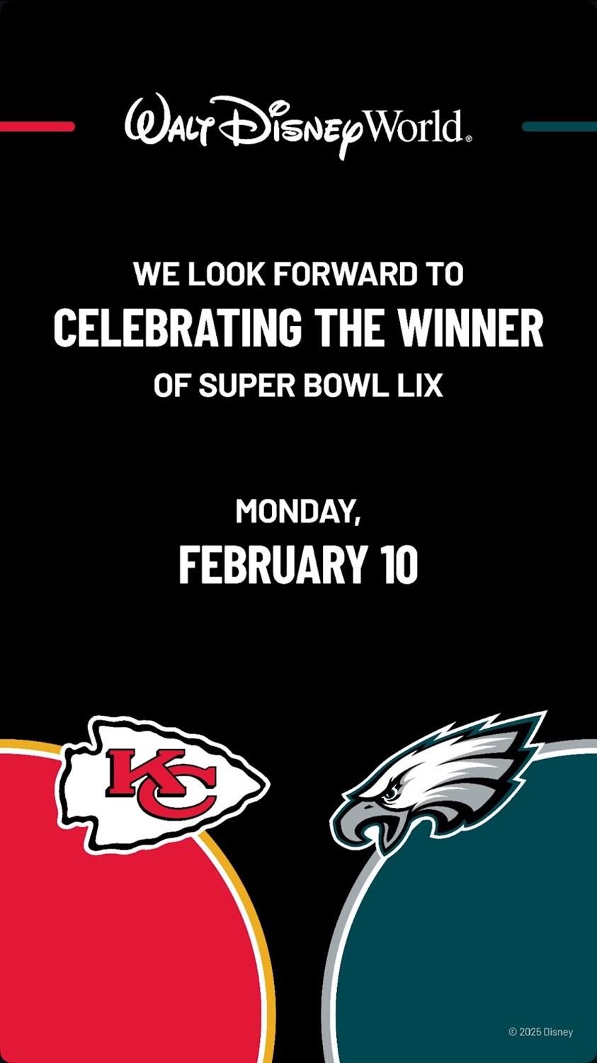 Well ahead of the big game we know who won! Won the battle of which Disney destination the champions of Super Bowl LIX will be headed to that is, and this year it’s Walt Disney World!