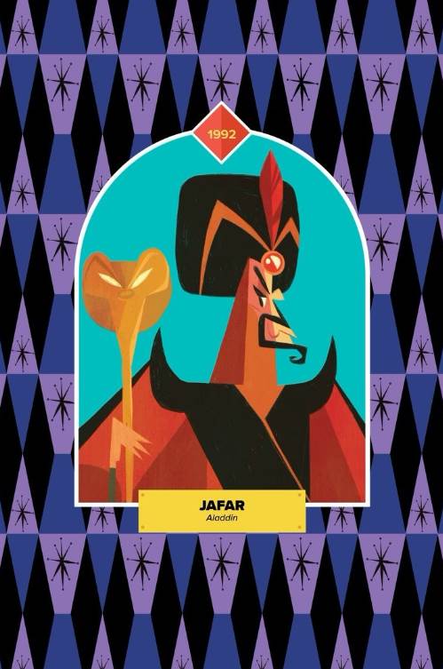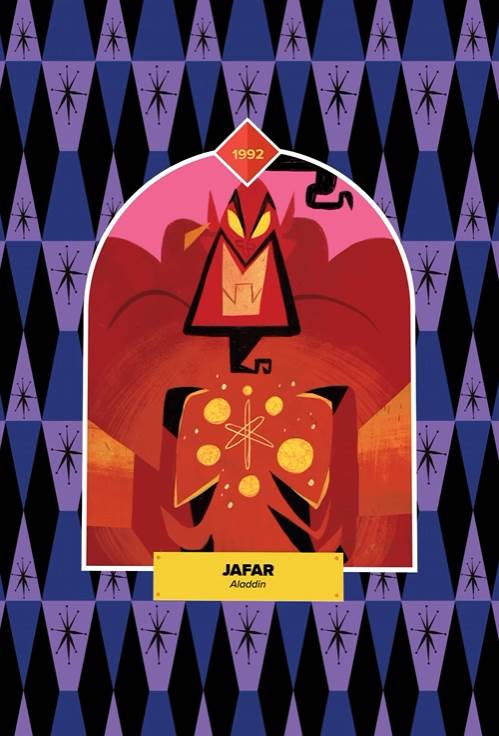 - The Aladdin villain, who can be viewed in his human and genie forms, is the second to last card in the villain series.