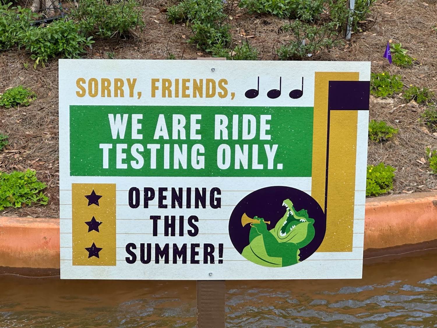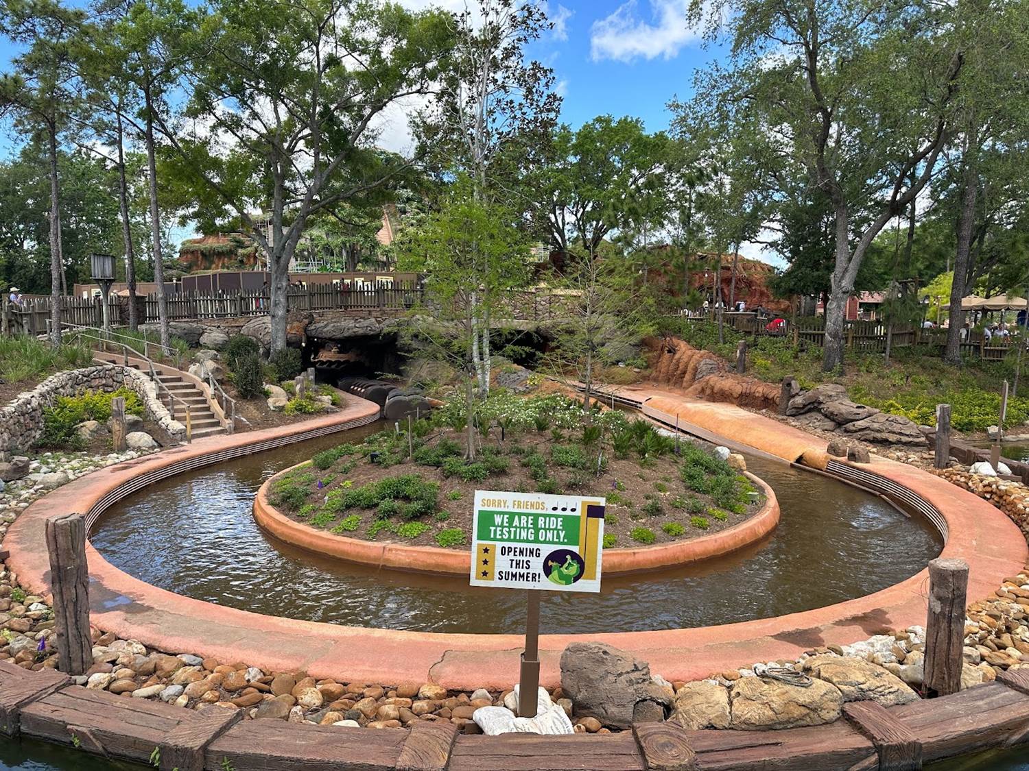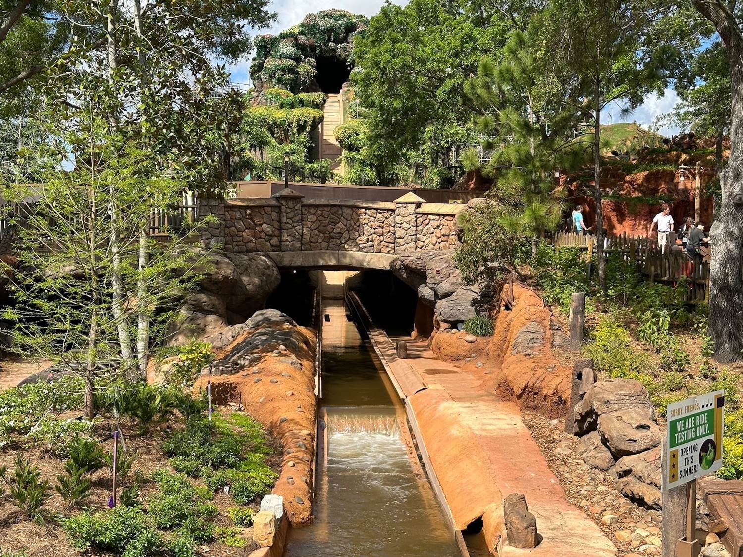 With the flowing water returning to the attraction last month, the ride has begun testing recently. A sign has been put in place to let guests know that it is in fact only testing and not yet open to the public.