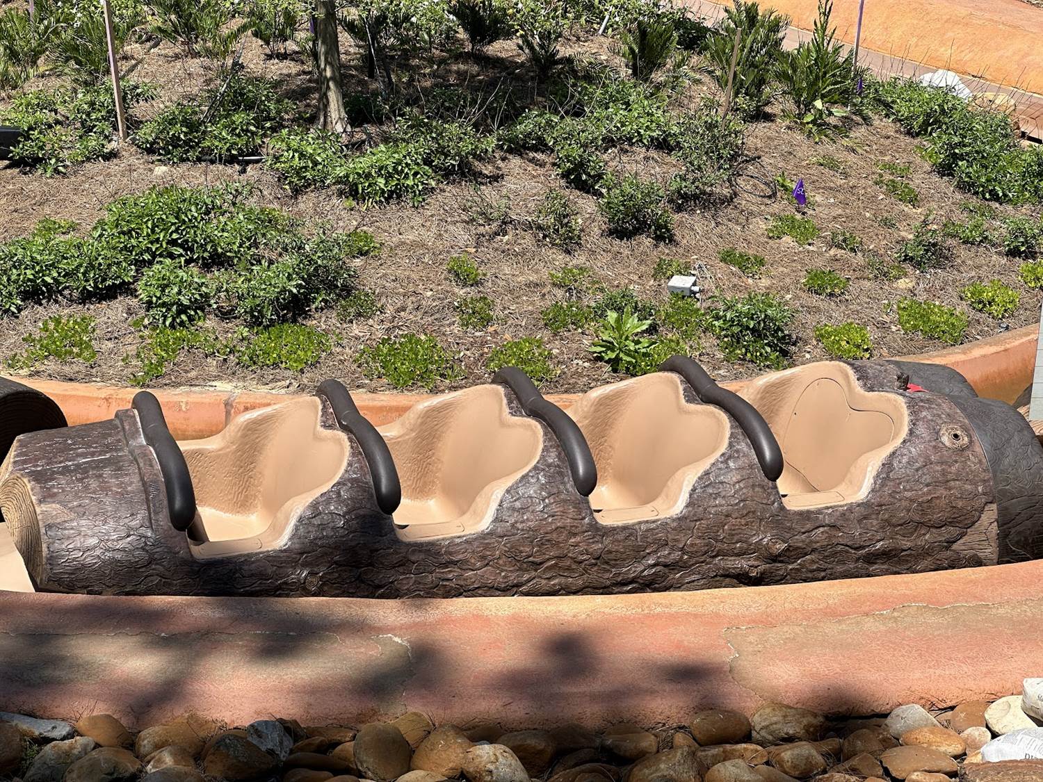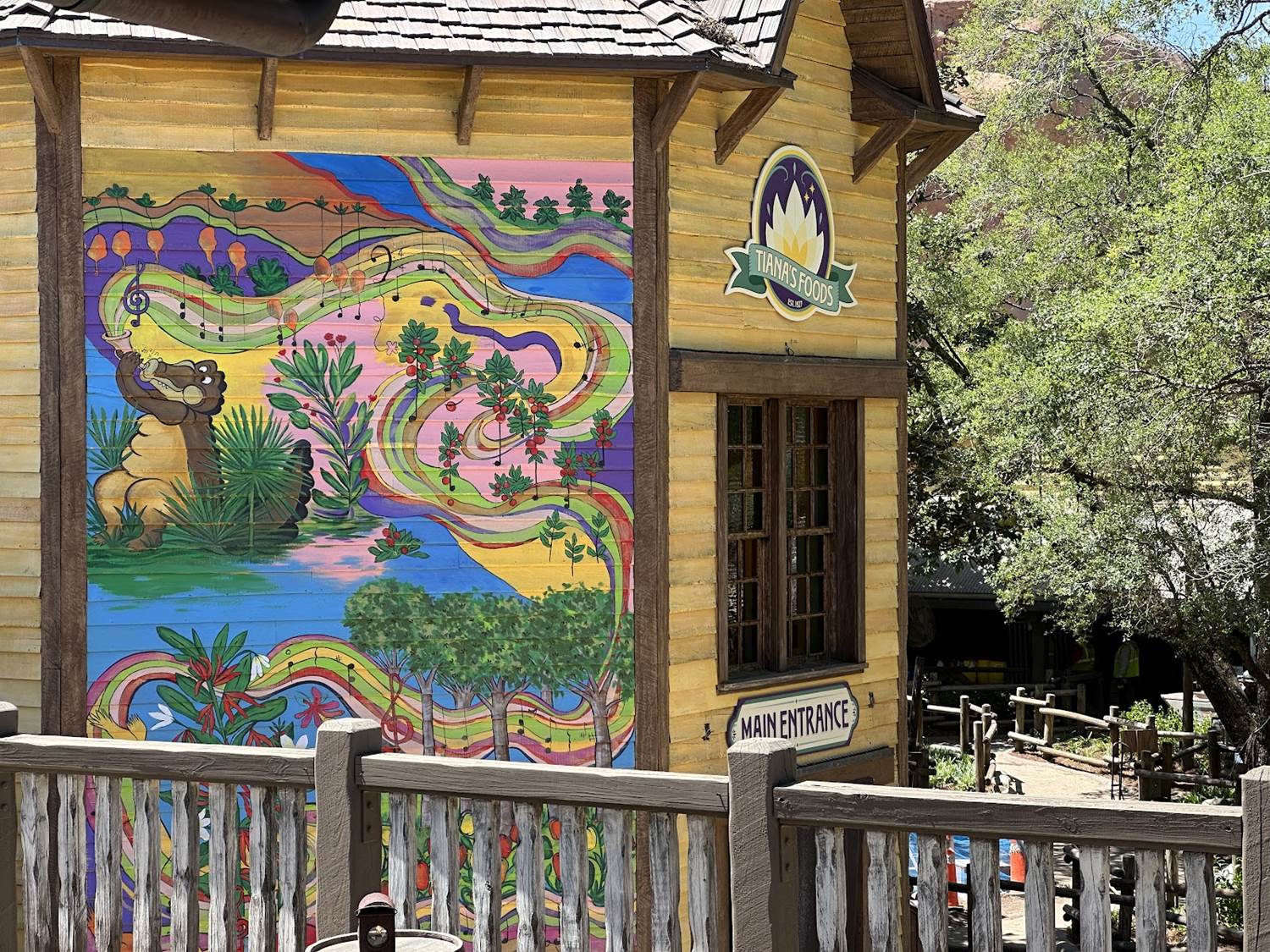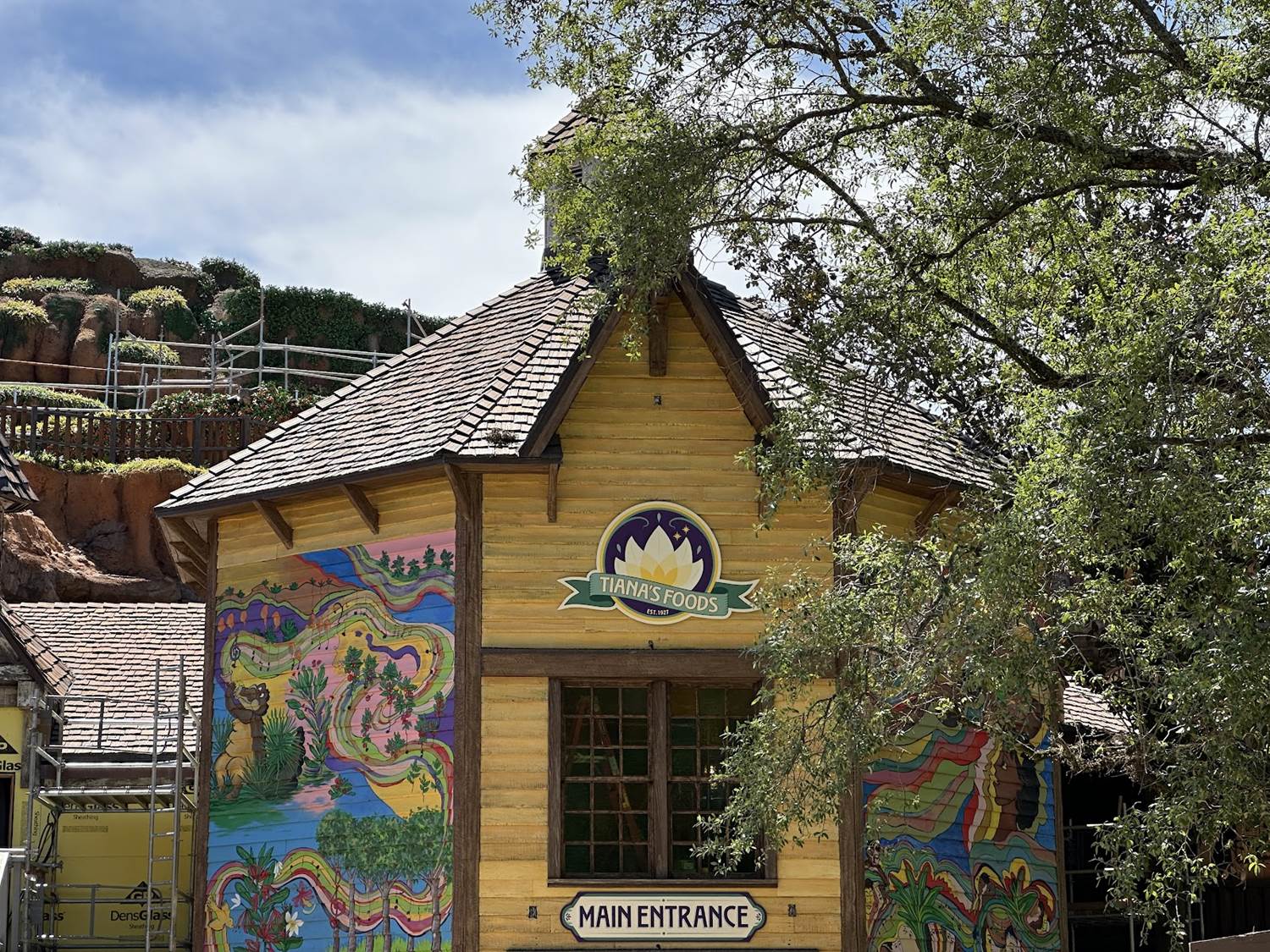 The exterior seems to be mostly complete, with the main drop of the attraction looking almost entirely different than the original Splash Mountain that once occupied this location. Brightly colored murals that have been largely talked about adorn the side of the entrance building, which is still largely blocked from guest view, unless you happen to go up to the Frontierland Train Station.