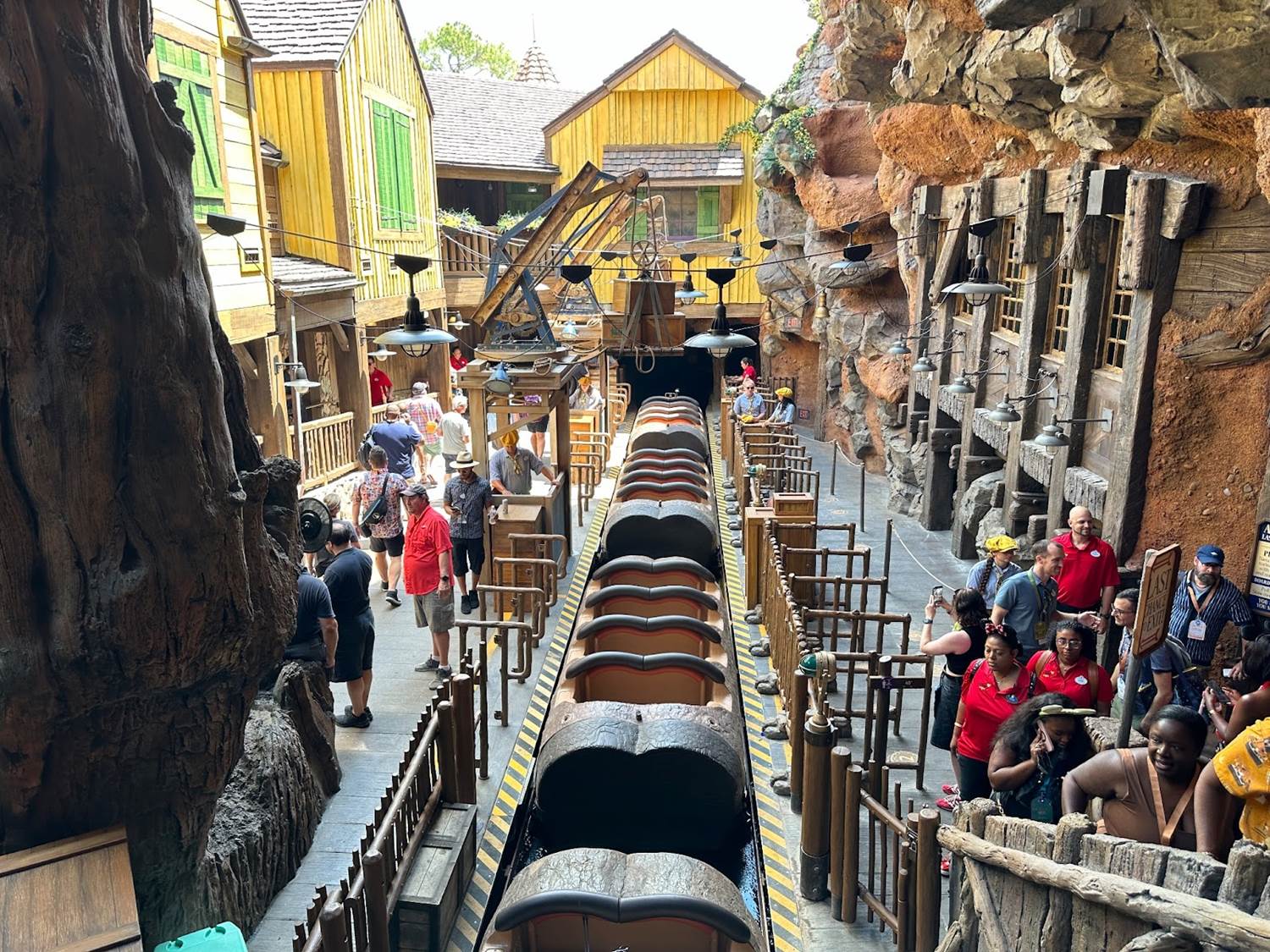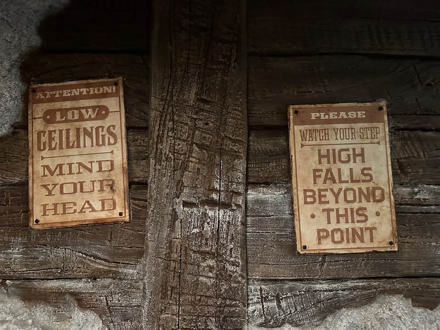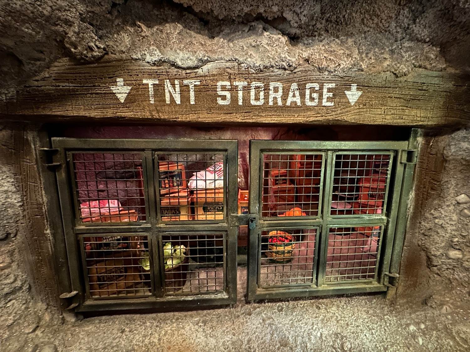 With the attraction’s structure now being that of a salt mine, instead of a mountain, the last part of the queue has guests descending downwards into a salt mine, complete with some TNT storage.