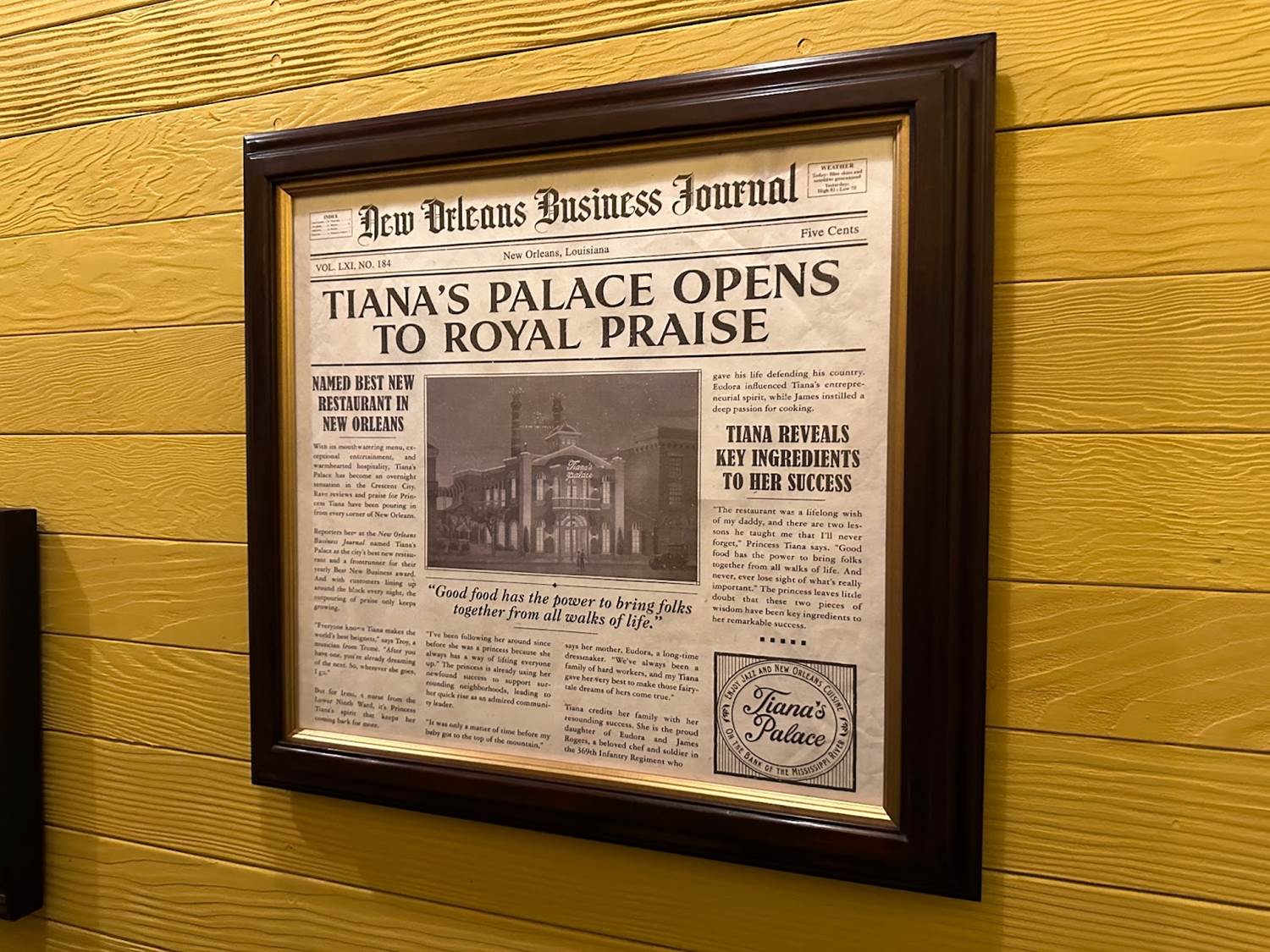 You’ll even find some newspaper clippings, such as this one heralding the opening of Tiana’s Palace.