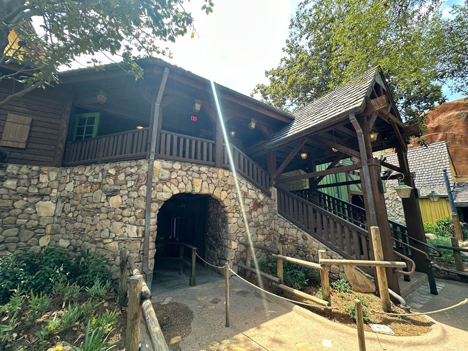 The exterior of the queue is set up very similarly to that of Splash Mountain, although the vibes are very different with the New Orleans jazz-inspired music playing, as part of a radio station.