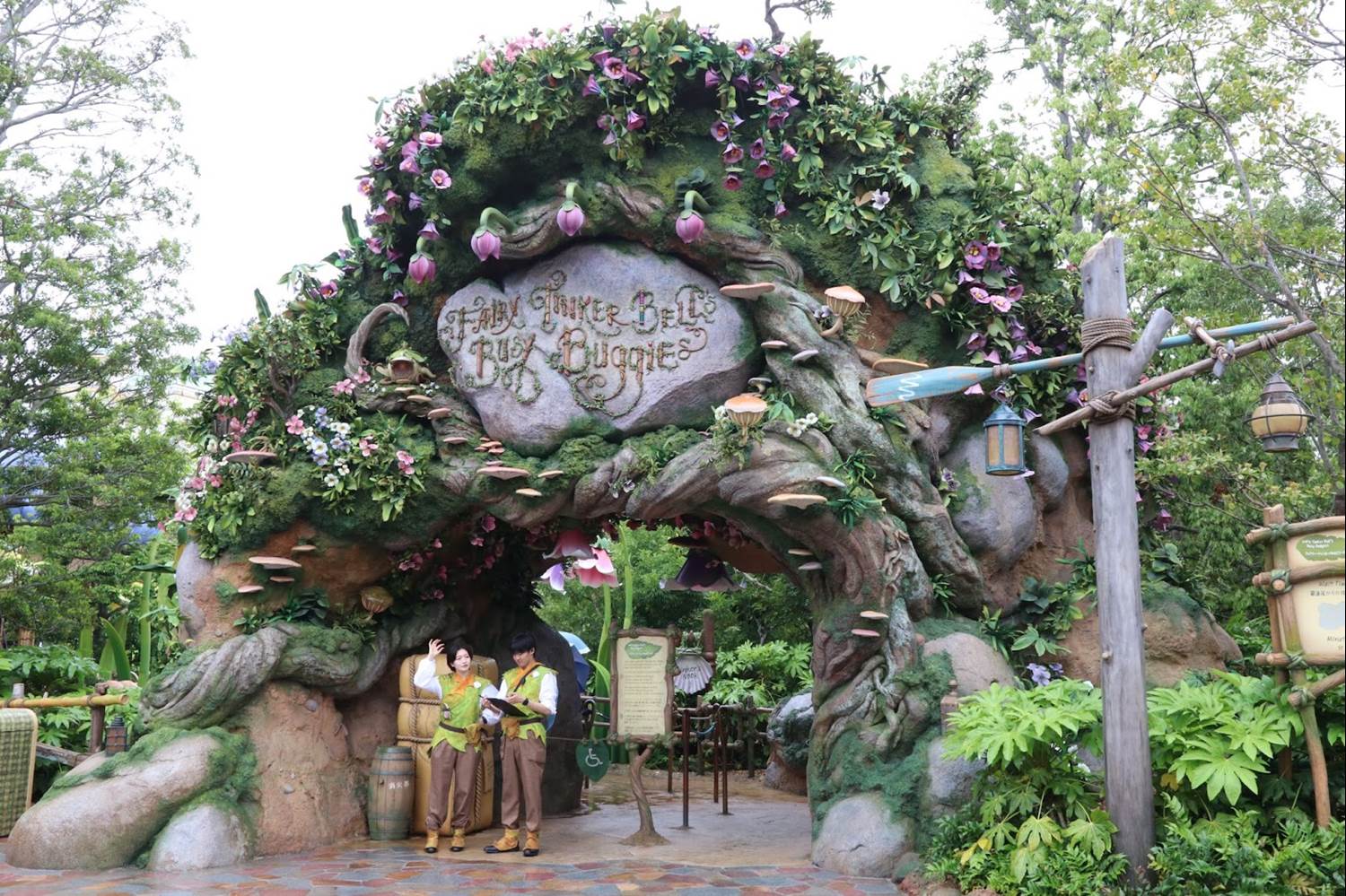 - One of the attractions in the Peter Pan’s Never Land section of Fantasy Springs is Fairy Tinker Bell’s Busy Buggies.