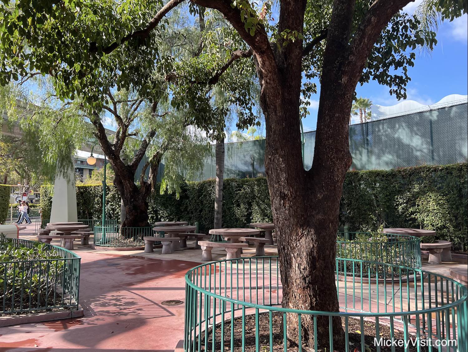 4. Utilize the picnic area outside of Disneyland. A secret spot at the Disneyland Resort that some guests may not know about is the picnic area located just west of the main entrance of Disneyland Park. This outdoor area has trees and plenty of tables to sit at and is adjacent to a set of lockers where you can store your food, utensils, and picnic gear until you’re ready to eat. Its convenient location tucked away from the hustle and bustle of the parks also makes it a great spot to take a midday break and reset for a little bit. If you are planning on bringing your own food to Disneyland, don’t forget to take advantage of this complimentary picnic area.