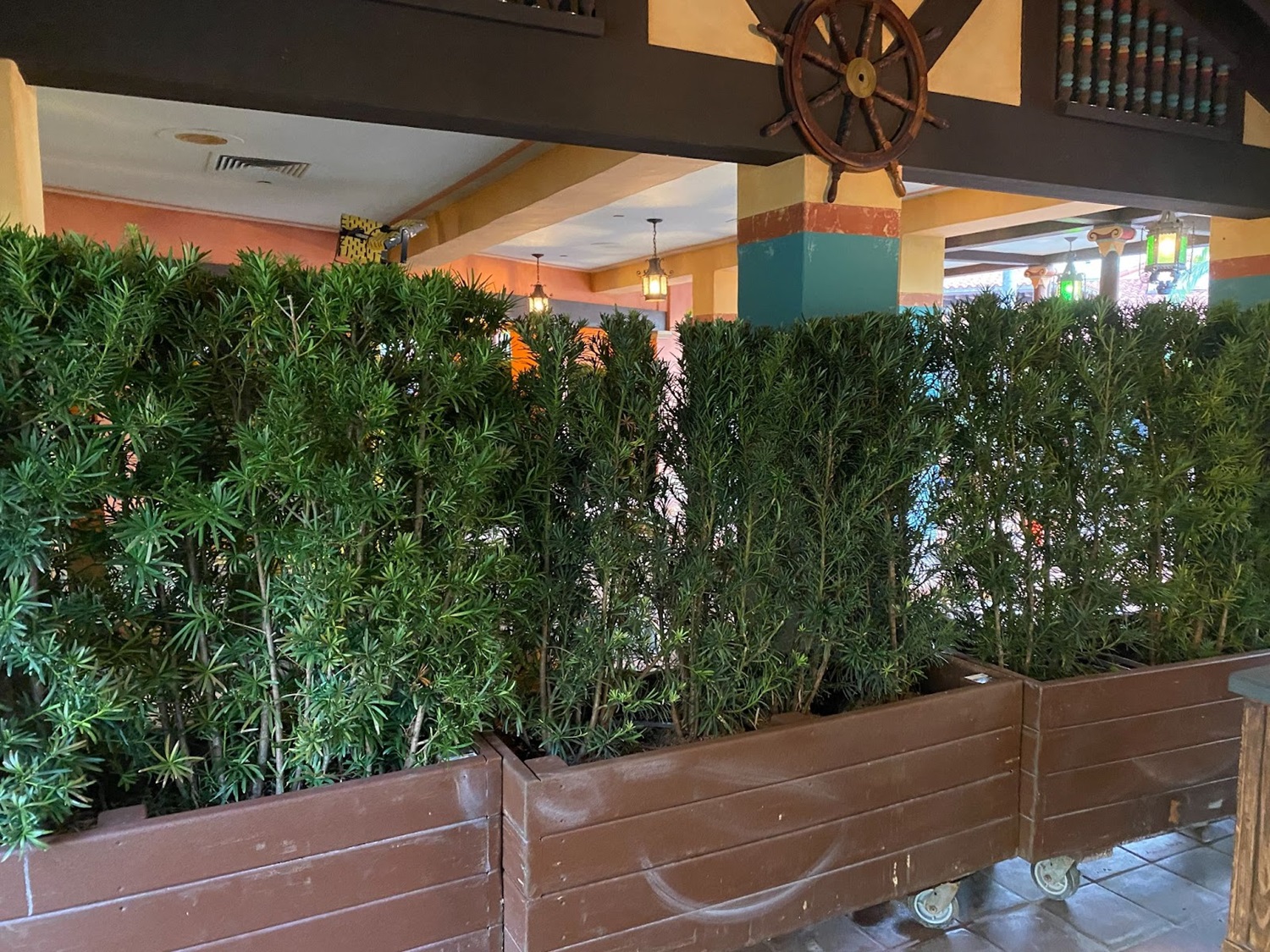 - The large planters extend out into the front of the restaurant, surrounding any clear view or access to the area.