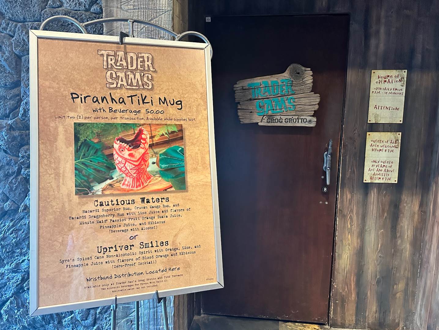 - Trader Sam’s Grog Grotto at Walt Disney World resort has officially released the new first-edition red-glaze Piranha Tiki Mug.