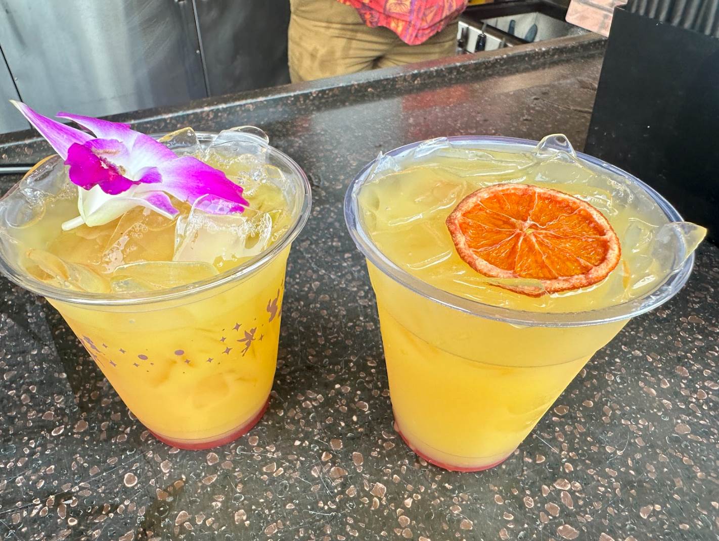 - Cautious Waters (Alcoholic): Bacardi Superior Rum, Cruzan Mango Rum, and Bacardi Dragonberry Rum with Lime Juice and flavors of Minute Maid Passion Fruit Orange Guava Juice, Pineapple Juice, and Hibiscus.