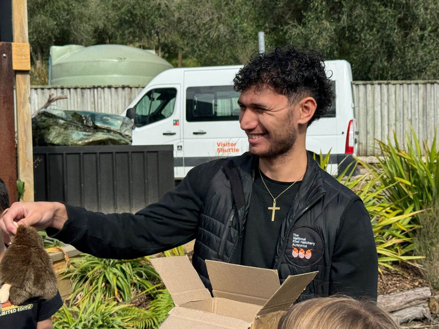 Before we boarded our bus, our tour guide from the hatchery ran out with a box to share that he had a kiwi we could meet. Opening the box, it ended up being the plush kiwi (named Kenai) that our Adventure Guides have used several times to distribute our pin of the day. It features Snow White with a friendly kiwi on her hand and features the title of the day’s adventure, “Save the Kiwis."