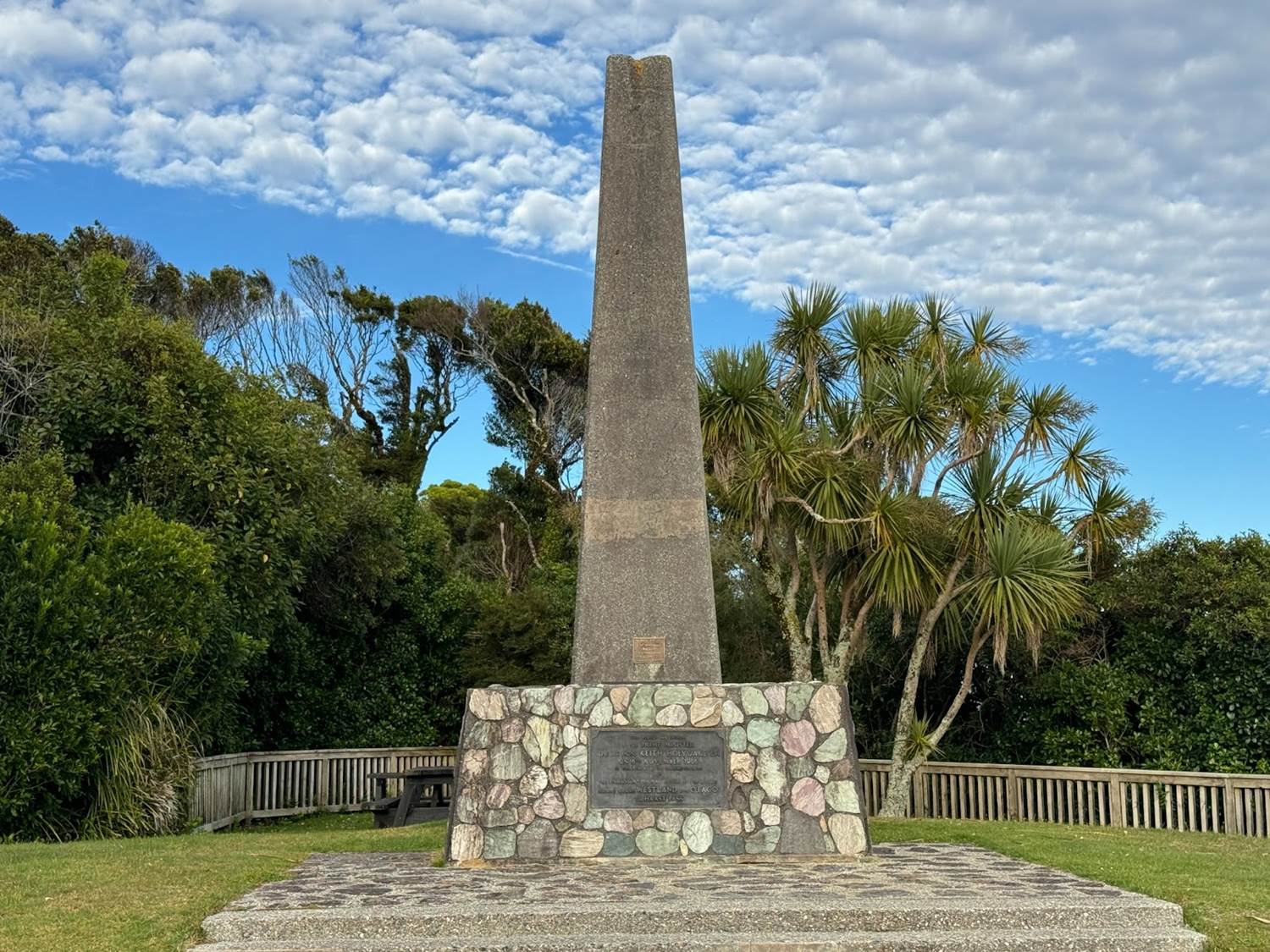 A stone obelisk marks the merger of two highway projects that were completed in 1965, connecting the west stretch of the coast on the South Island.