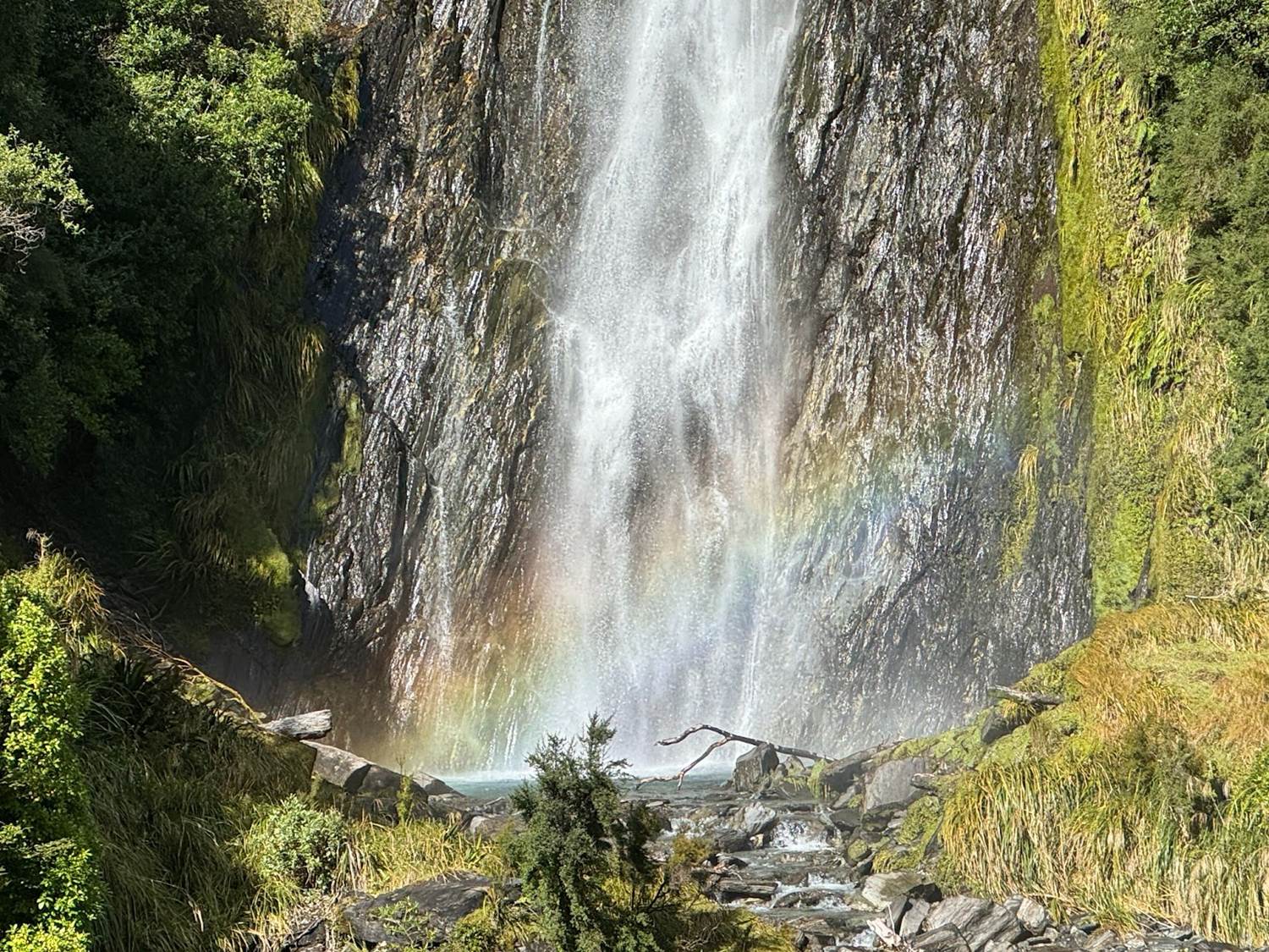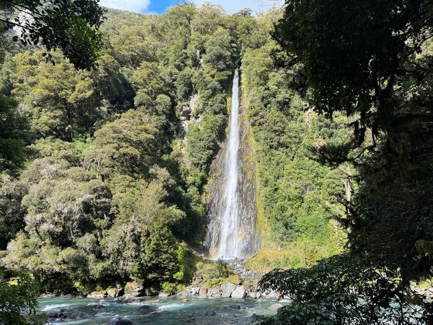 The next opportunity to stretch our legs came at Thunder Creek Falls, a short 5-minute walk from the road. Our Adventure Guides took photos of each family in front of this 91-foot-tall waterfall that feeds the Haast River.