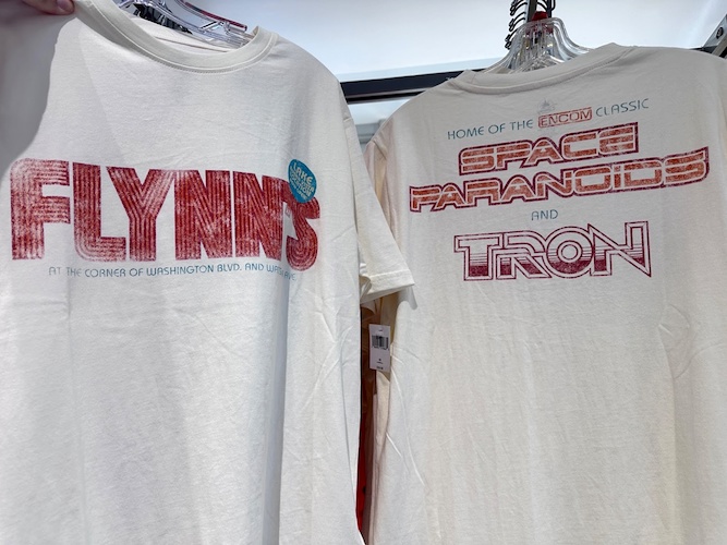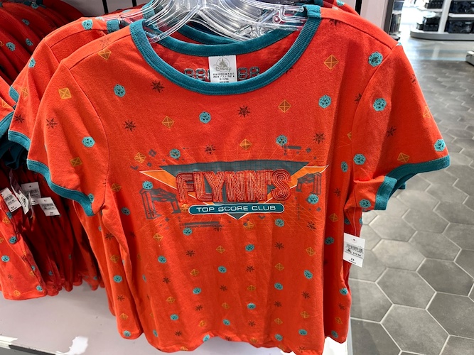 Flynn’s Arcade – and joining the coveted Flynn’s Top Score Club – continues to be a big source of merch, as seen on these shirts and hats.