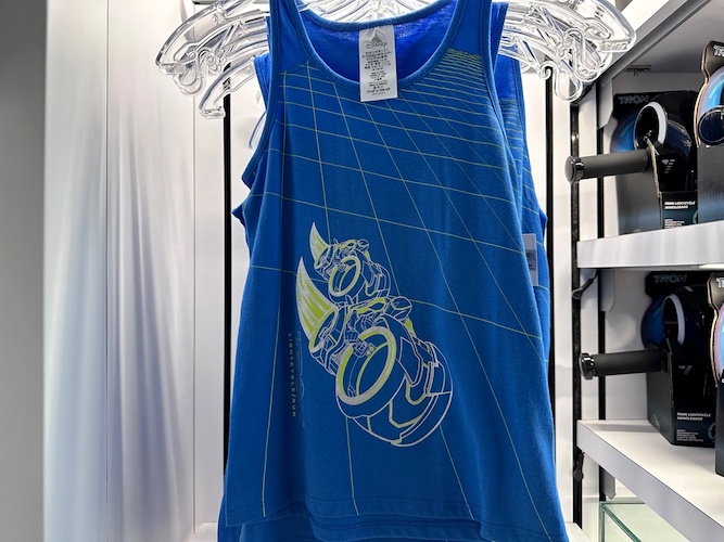 While the later TRON: Legacy-type lightcycles, which are the ones that influence the ride itself, can be seen on this tank top.